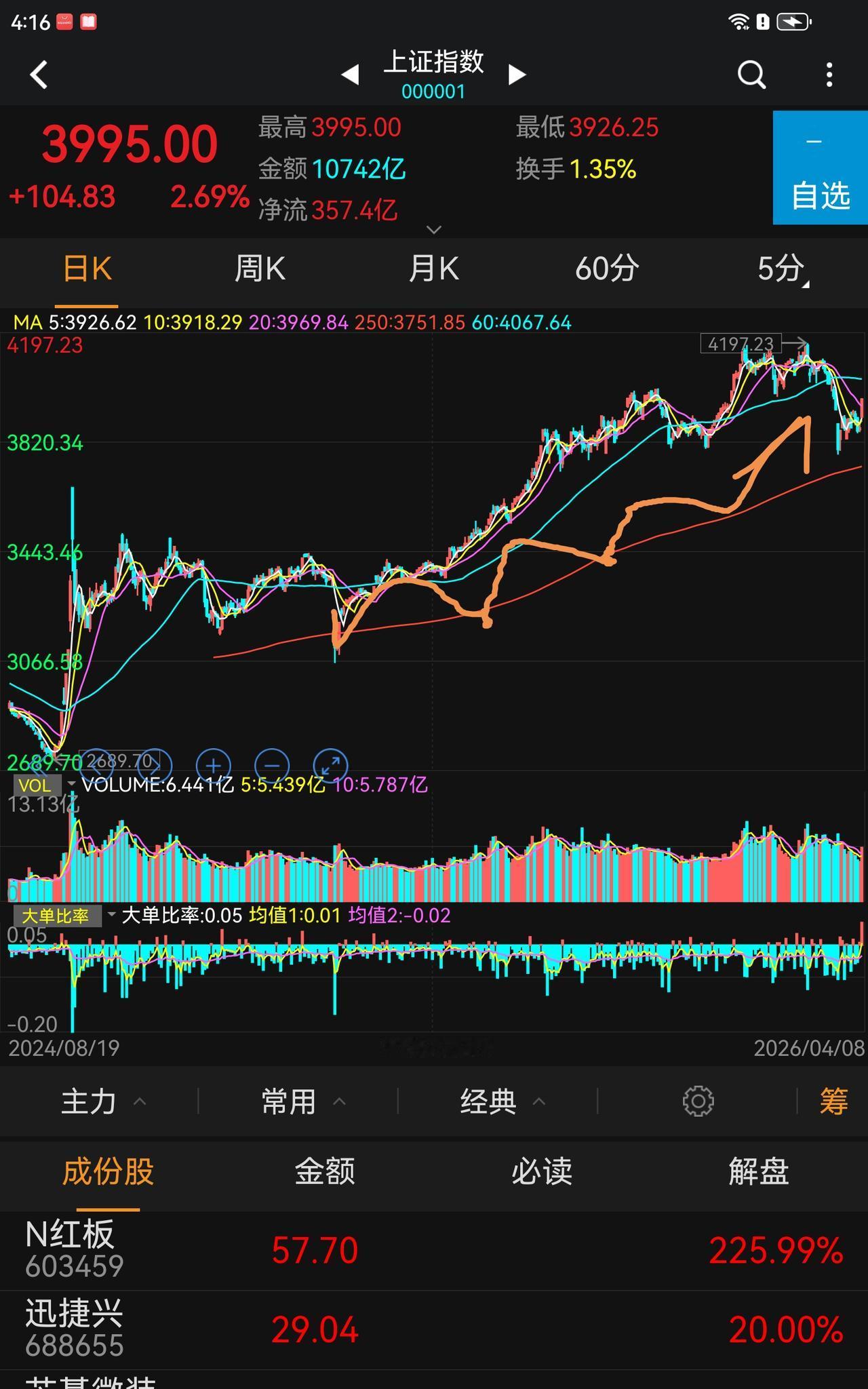 看看个股,不走平常路的也多,图一,你可能认为会砸下去,等着捡便宜,不一定哦,可能就这样上去了。
