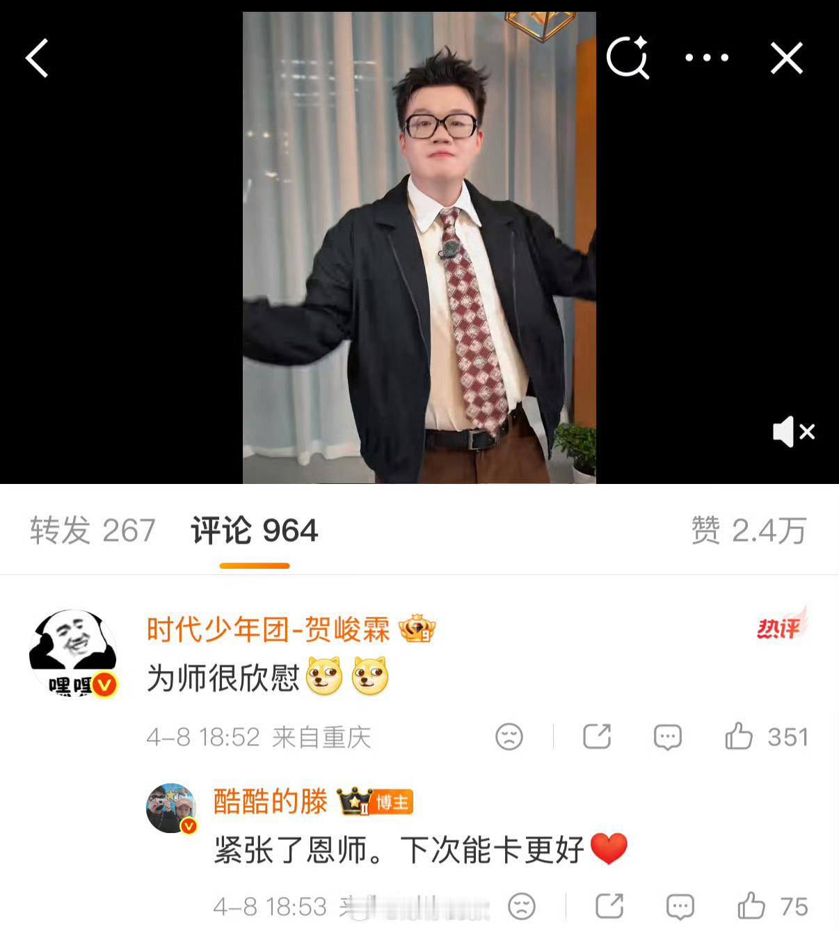 酷酷的滕恩师小贺五十公里桃花坞 酷酷的滕的恩师名单上,除了王者荣耀,现在新增:贺峻霖(手势舞专精)。