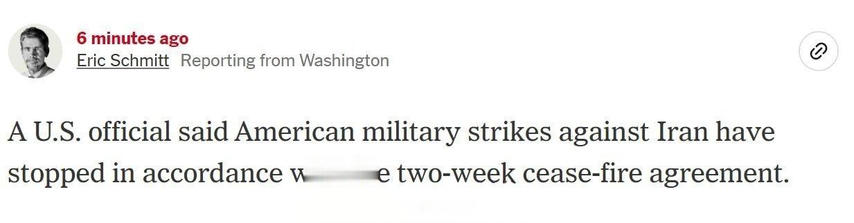 据美国《纽约时报》报道称,按照为期两周的停火协议,美国对伊朗的所有军事打击行动均已暂停。
