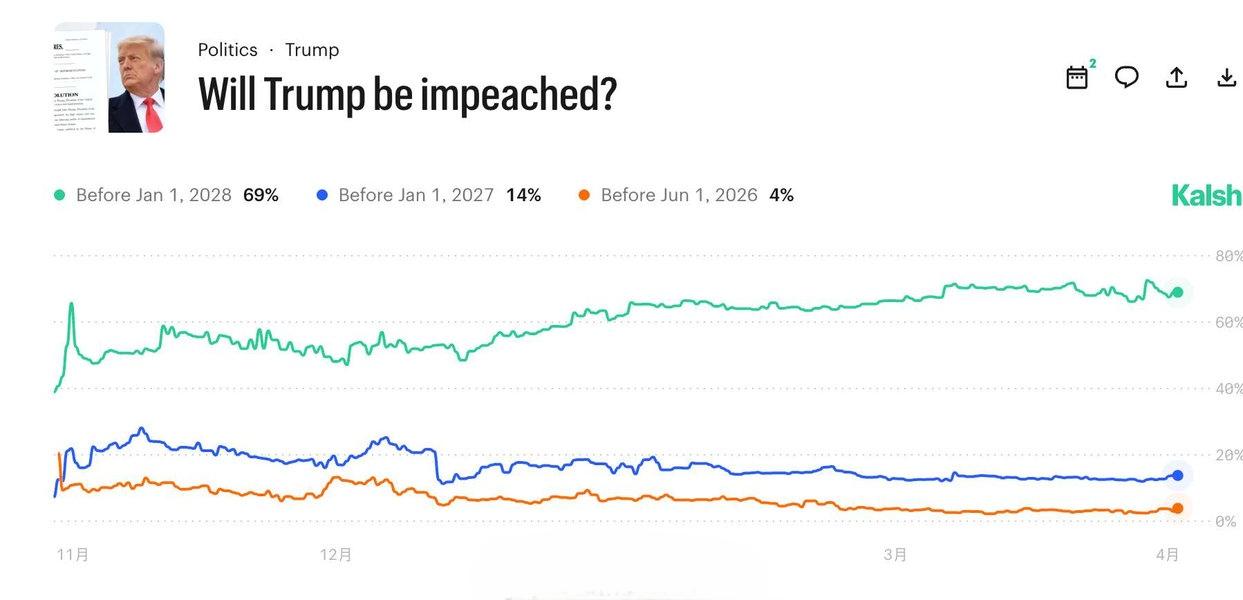 特朗普在2028年前被弹劾的可能性约为 69%。
