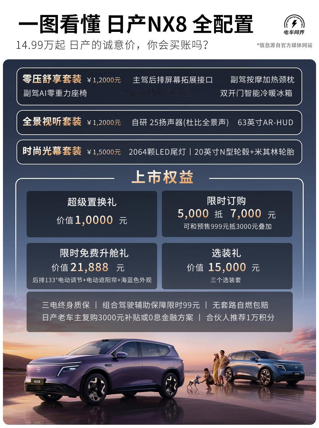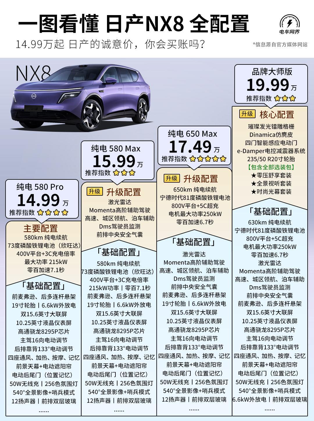这次NX8提供增程和纯电2个版本可选,续航够高,入门配置也不低。除了日产的大沙发,还有冰箱、Momenta、宁德时代800V 5C…该有的都给你配上了。