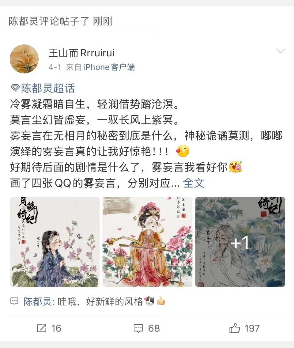 陈都灵活跃的像个高仿号陈都灵回复粉丝二创陈都灵也太宠粉了吧!认真回复粉丝的二创内容,互动超级积极,这种双向奔赴的温柔也太圈粉了,谁能不心动! 月鳞绮纪