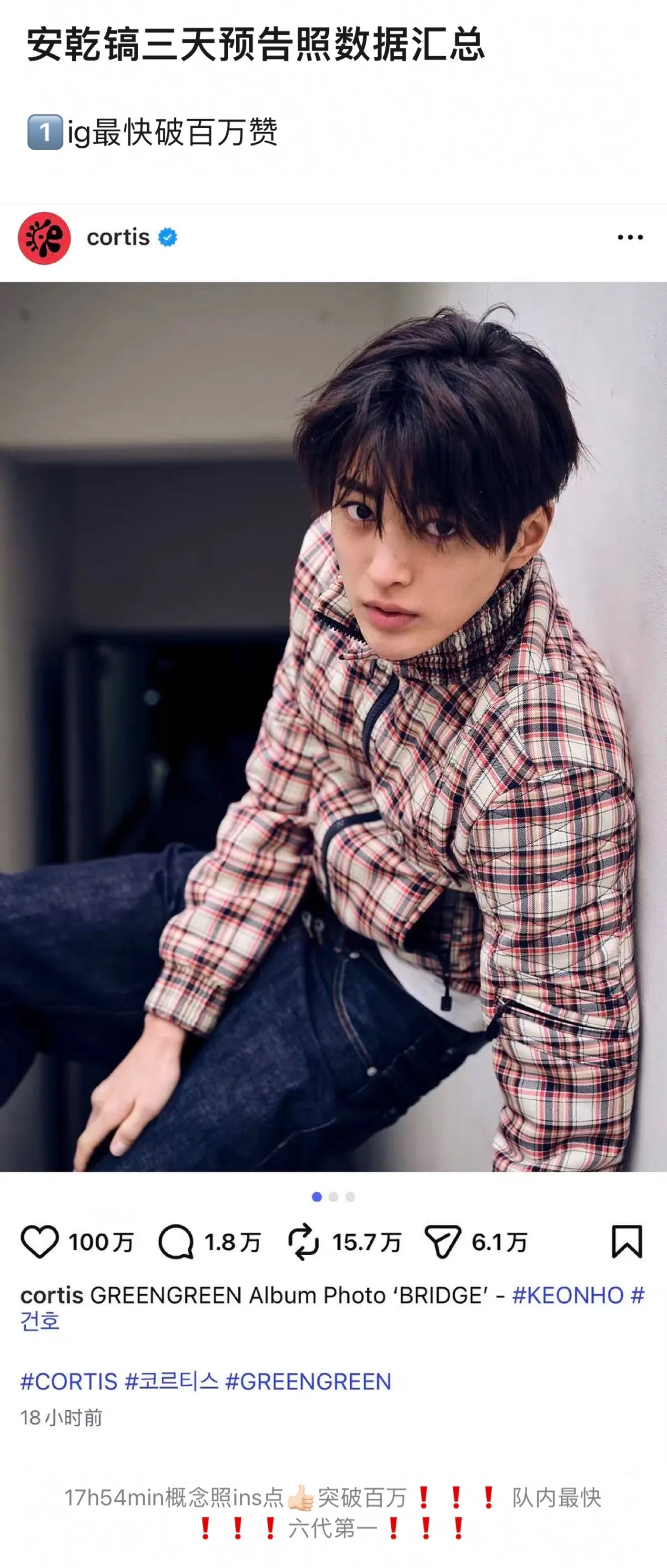 安乾镐三天预告照数据汇总1、ig最快破百万赞2、连续两天登上趋势3、黑叉数据最快