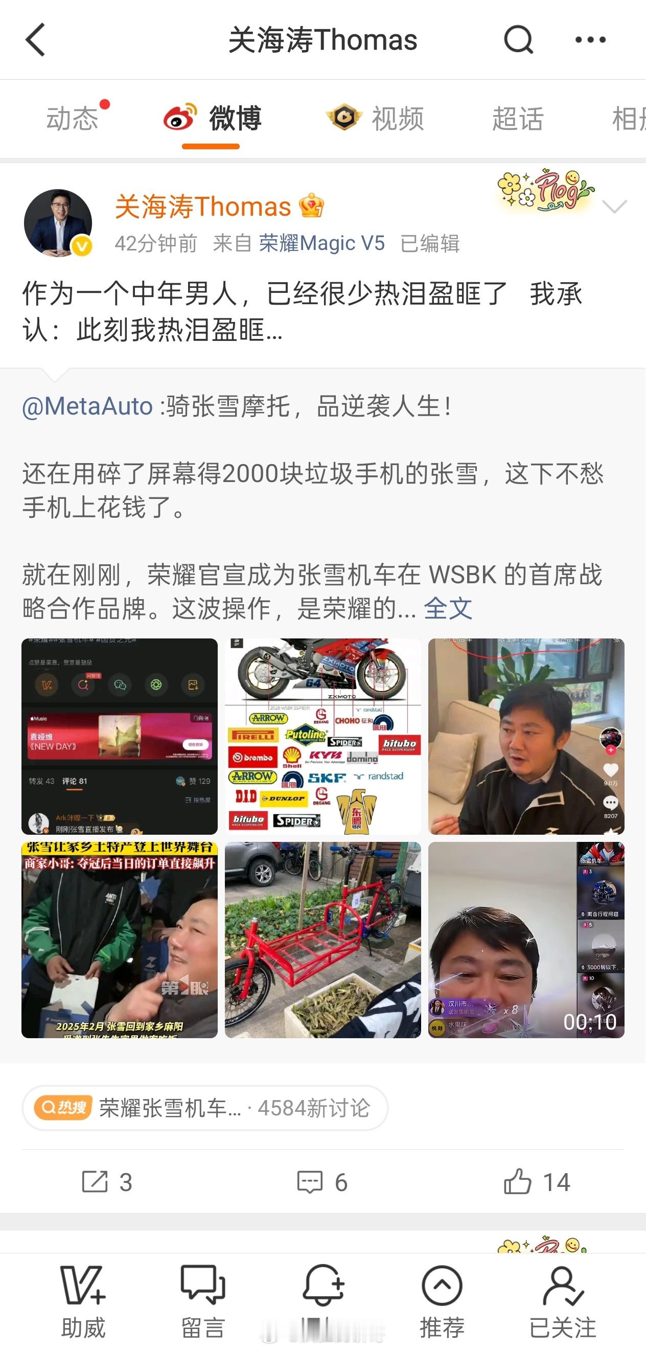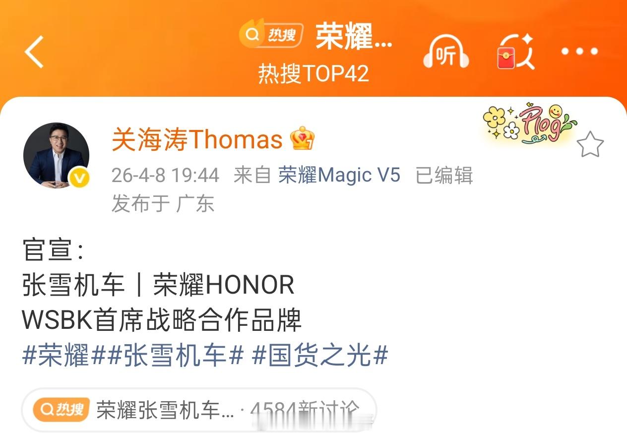 荣耀张雪机车战略合作 我只能说神仙联动啊,荣耀居然和张雪机车官宣合作了!我看着有