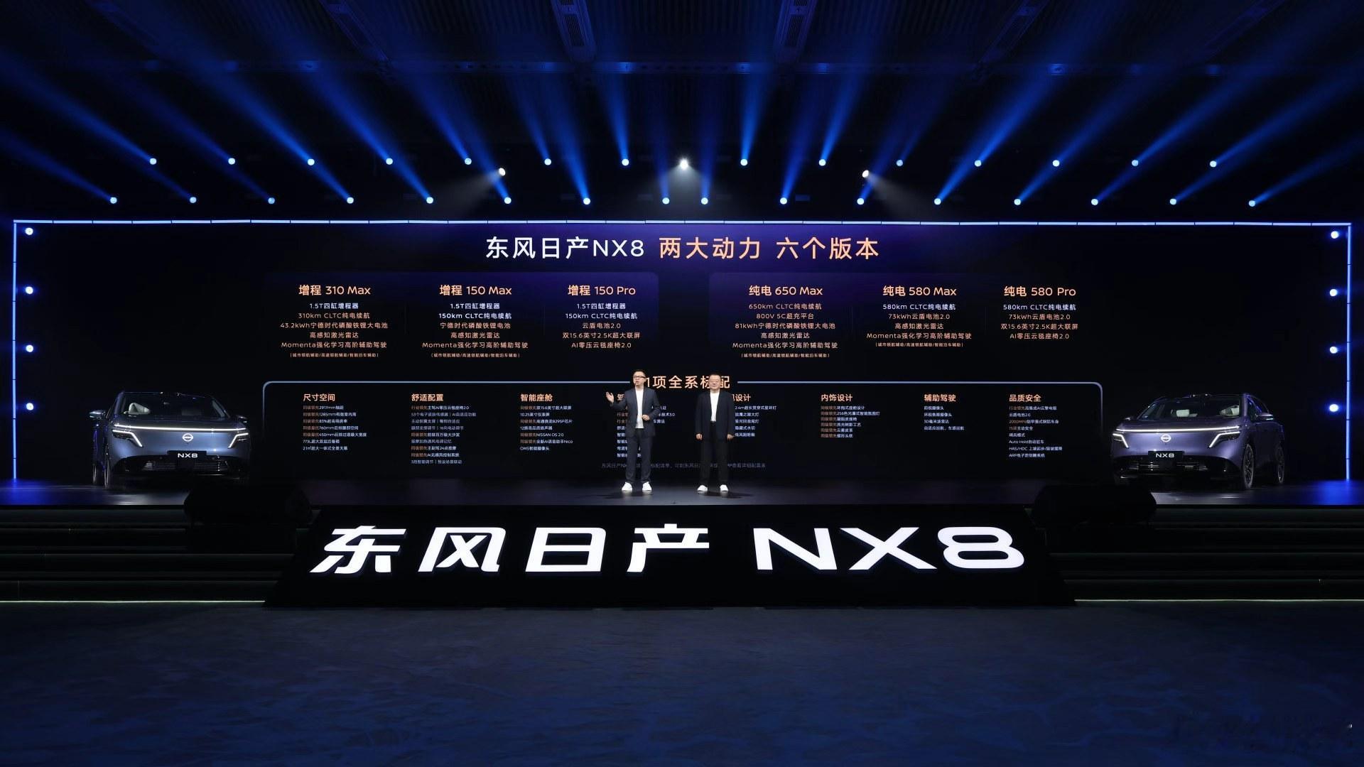最快发布价格的新车发布会4月8日晚,东风日产NX8发布会直接封神,全程仅30分钟,开场15分钟就直接官宣价格,没有冗长铺垫、没有废话套路 。官方价15.99万起,叠加补贴后限时14.99万起,一步到位,诚意拉满 。作为天演架构2.0首款车 ,NX8直接上纯电+增程双动力。纯电版800V+5C超充,6分钟补能300km ;增程版亏电油耗仅4.51L,综合续航超1400km。空间是大五座,得房率83% ,全系标配71项配置 ,激光雷达、高阶智驾、AI座椅、25扬声器音响全给足。发布会结束后,高管全员留场有问必答,不回避、不敷衍 。不玩虚的、不拖时间、价格一步到位、配置拉满。这才是消费者想看的发布会。