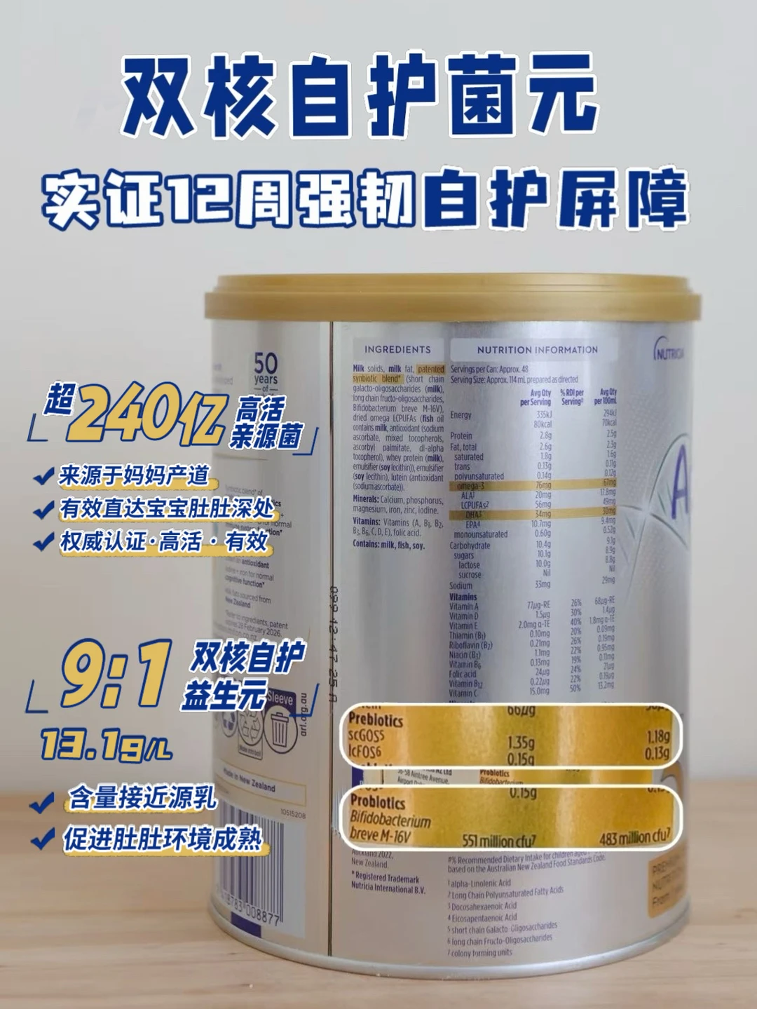 像我家宝宝喝的爱他美澳洲白金版,简直就是早阶智护天花板。添加了超240亿高活亲源菌,是妈妈产道和健康宝宝身上的同款原生菌,能快速在宝宝肚肚扎根。再搭配双核9:1黄金配比自护益生元GOS/FOS,含量高达13.1g/L,更加接近天生营养所需 5-15g/L,1.6倍增长有益菌,科学实证12周就能建立“肚肚自护盾”。