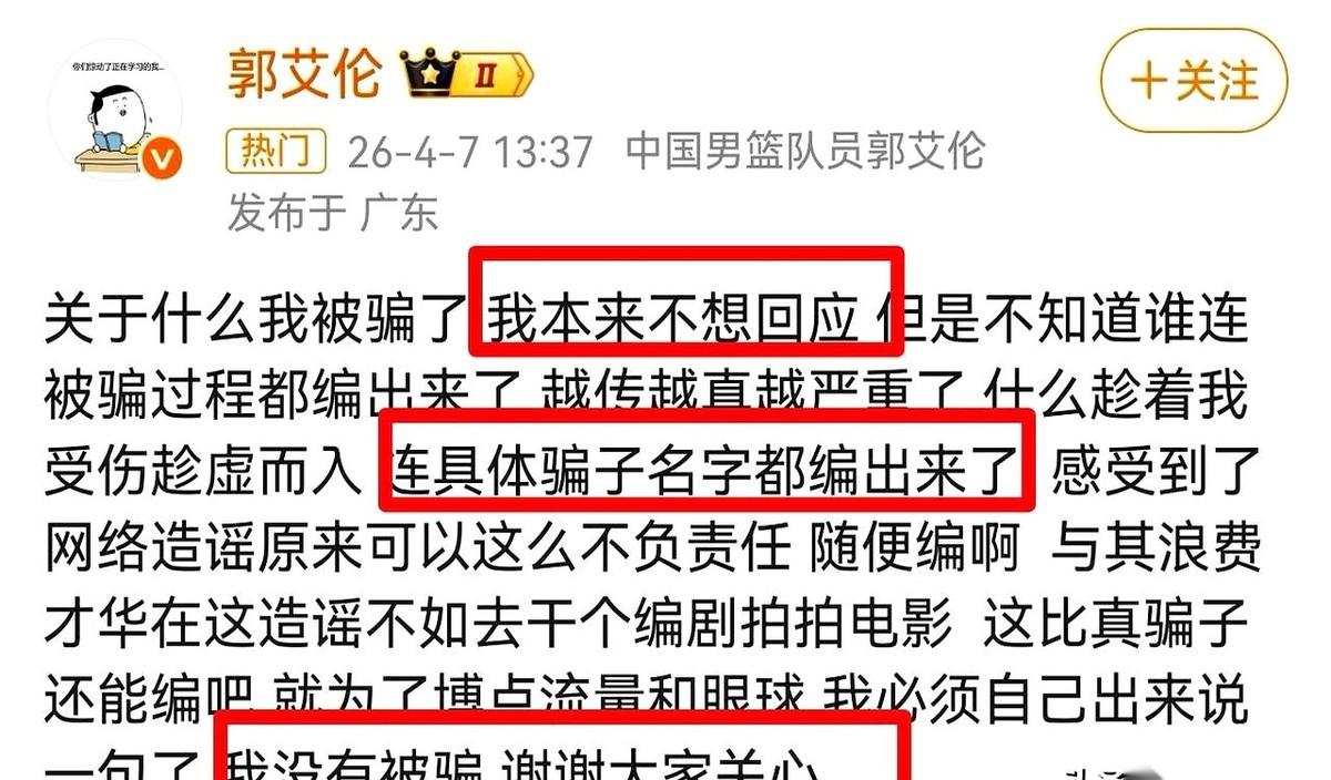 起初,郭艾伦手机一划就过,看都懒得看。他觉得,跟这种人多说一个字,都算自己输了。