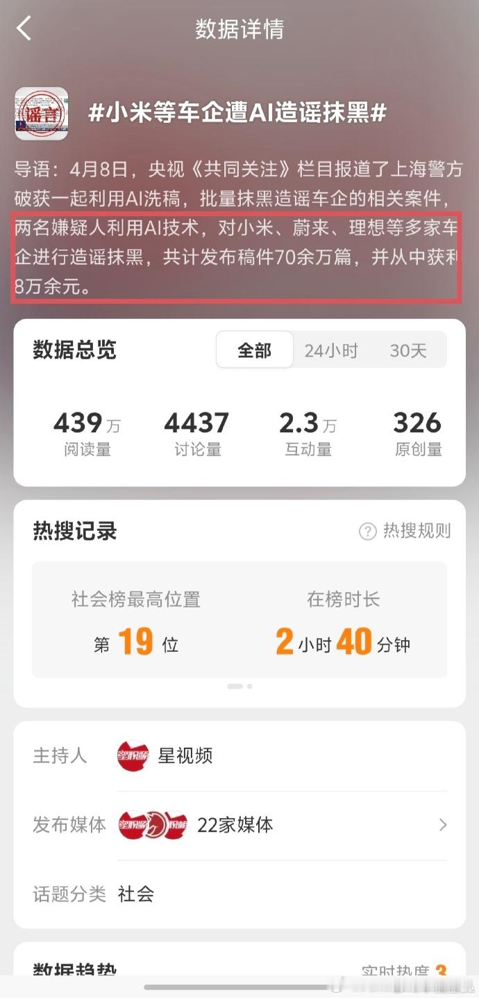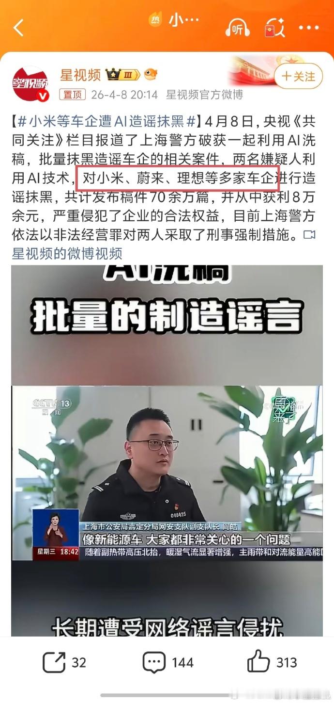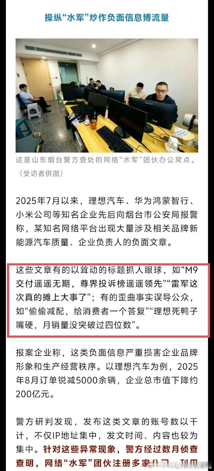 新华社的报道明确指出,山东烟台警方抓获的新型网络“水军”团伙,其打击目标是小米、理想、华为鸿蒙智行等多个知名品牌。