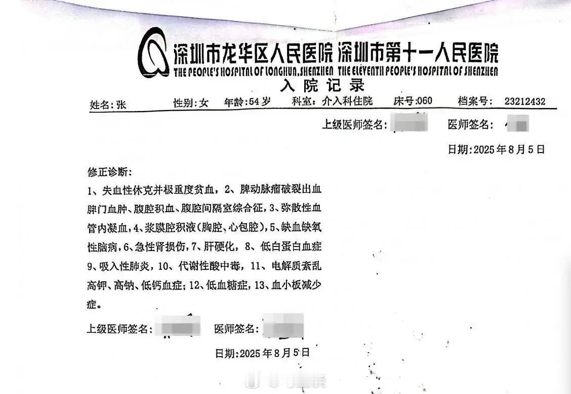 医护人员起初称“适合转院”,后以“病危无法转运”为由拖延近8小时,最终患者转入龙华区人民医院时已瞳孔散大、意识丧失,当天下午因脾动脉瘤破裂抢救无效死亡。