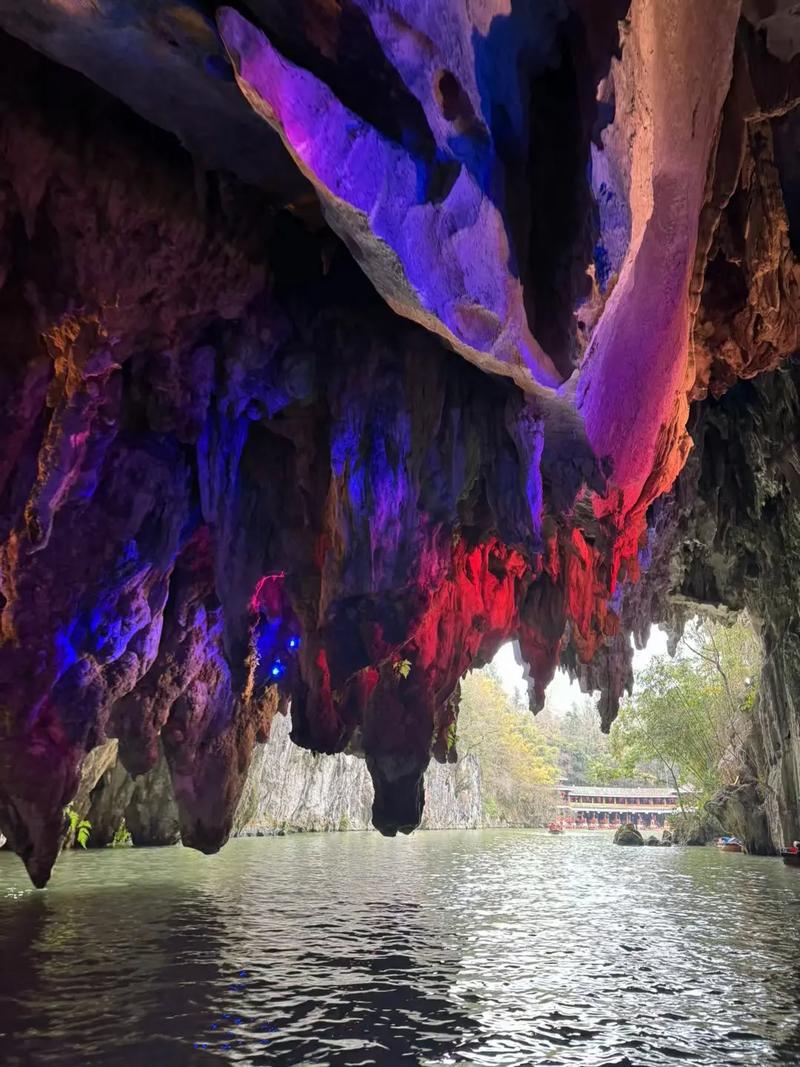 1️⃣.一进龙宫,水溶洞C位,乘船穿行840米暗河,看五彩灯光钟乳石。