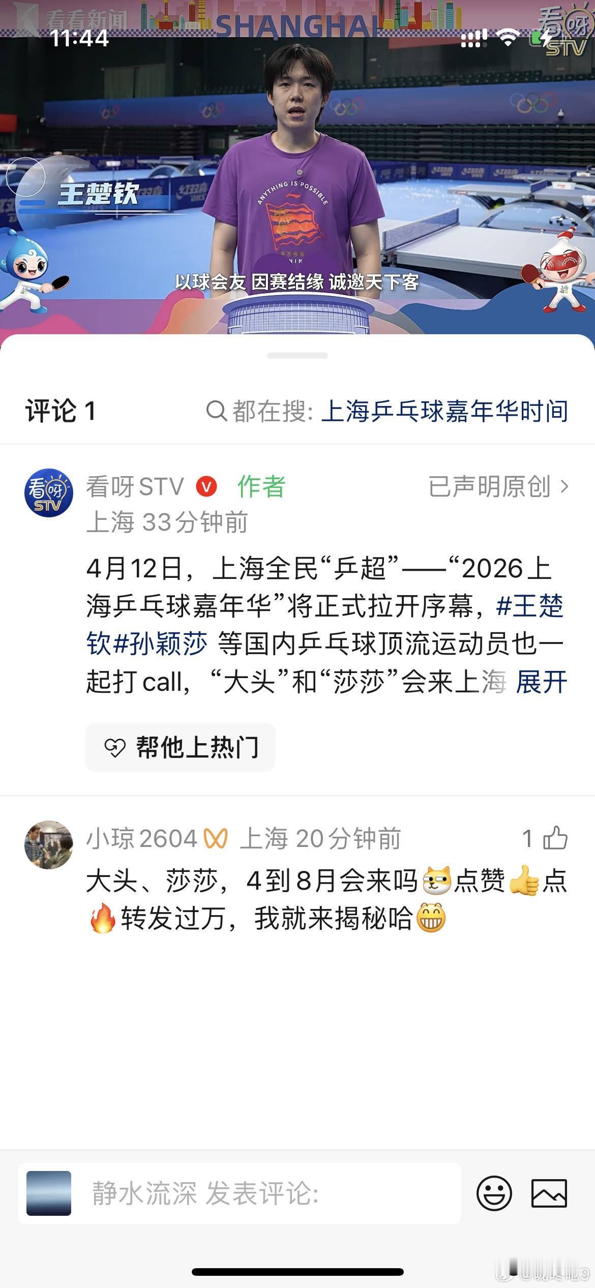 最新鲜的樊振东出现,在为上海全民乒乓球嘉年华做宣传视频。