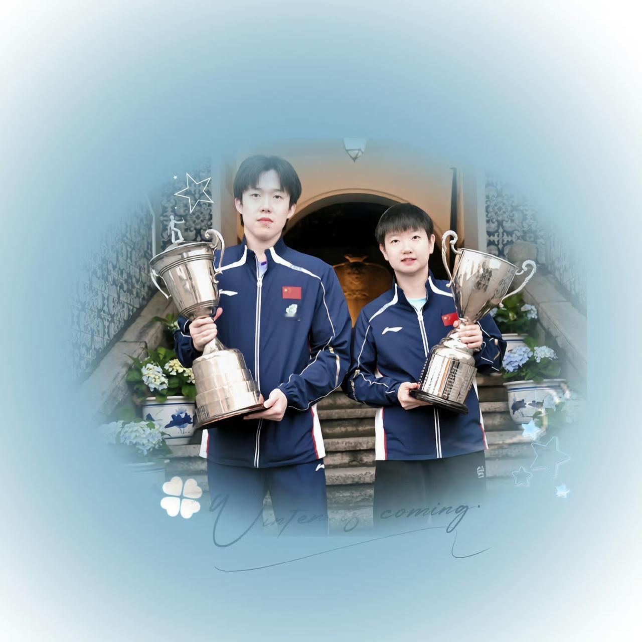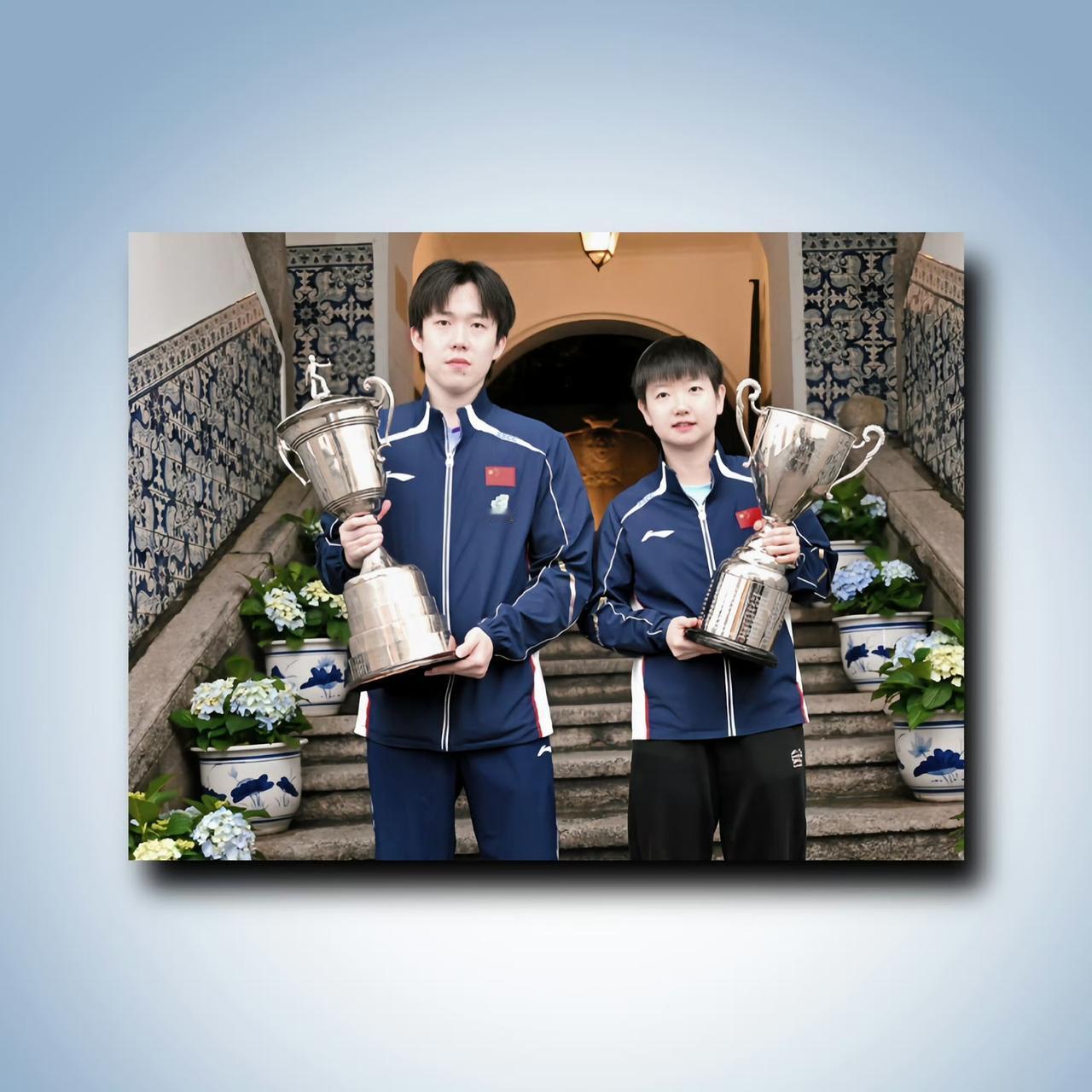蓝白相间的青花石阶旁,少年少女意气风发,眼神里是藏不住的坚定与荣光。这不仅是两座冠军奖杯的同框,更是国乒黄金一代的巅峰时刻,是无数球迷心中的意难平与白月光。