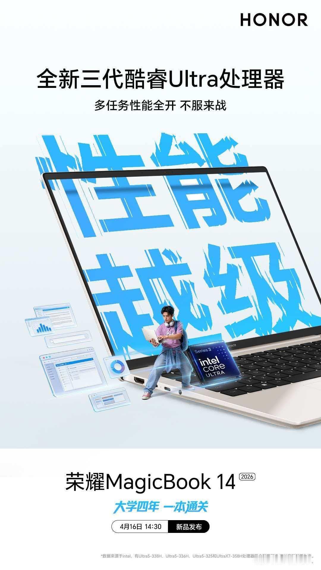 全新三代酷睿Ultra处理器,15+小时长续航,2.8K高清护眼屏,荣耀Magi