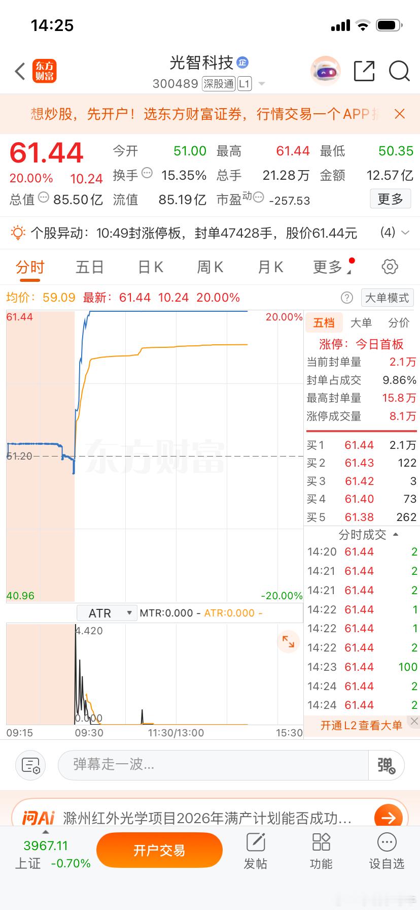 今早盘送出的$光智科技 sz300489$ 给力冲上涨停,666啊,上车的朋友爽歪歪了吧!