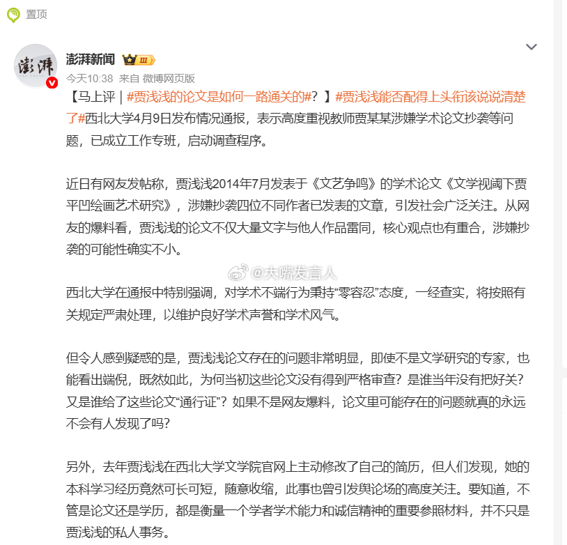 贾浅浅的论文是如何一路通关的 你说,她的论文一路通关,会跟她爹的影响力完全无关吗?