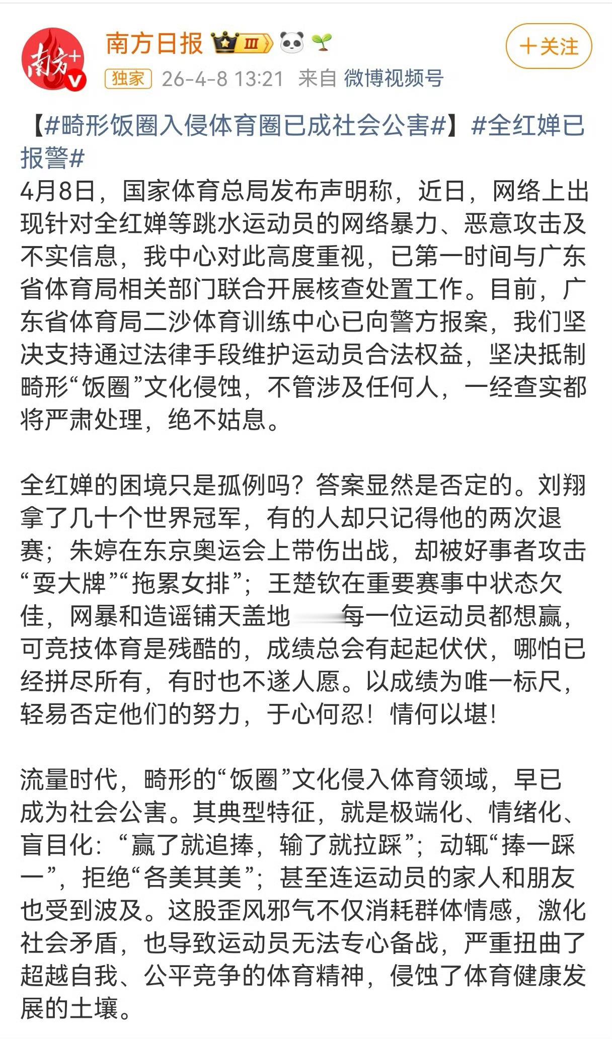 我问我专门搞体育的朋友,全红婵这次报警,结果会不会雷声大,雨点小?朋友白了我一