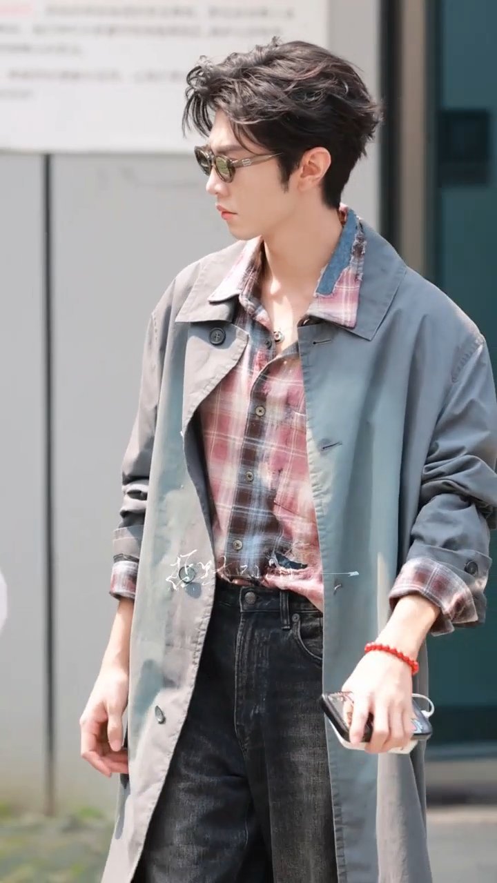 所有人请品味!!哲远戴墨镜穿长风衣简直男模来的陈哲远墨镜风衣造型陈哲远穿上长风衣