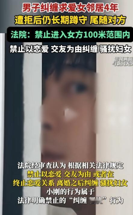 太变态!上海,男子觉得女邻居长的颇有姿色,就跟她求爱了。但人家瞧不上他,明确拒绝。求爱未果的男子,非常不服气,一直纠缠、蹲守、尾随女子长达4年之久,连她的父亲都不放过。女子多次报警,但被民警批评教育后,男子依旧我行我素。实在没办法,她只能把男子告了,法院:禁止进入女方100米范围内!