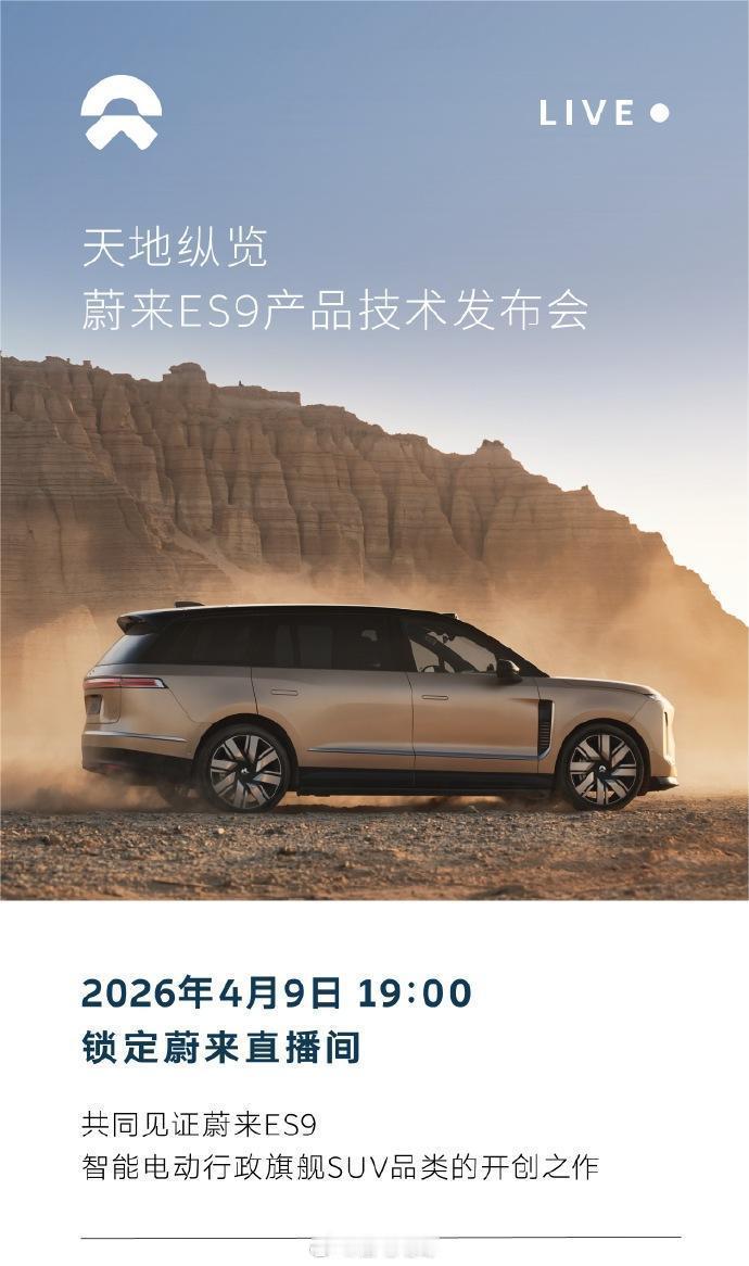 蔚来ES9 产品技术发布会 就在今晚!(4月9日 19:00)同时蔚来ES9地平