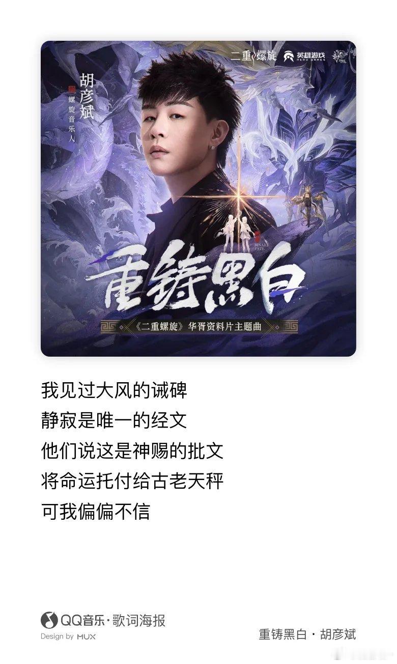 胡彦斌战歌给到一个夯胡彦斌一开口次元壁破了“我从来不跪神明,我来时自带天命”——这句一出来,整个人直接燃爆!胡彦斌的嗓音就是为这种战歌而生的!
