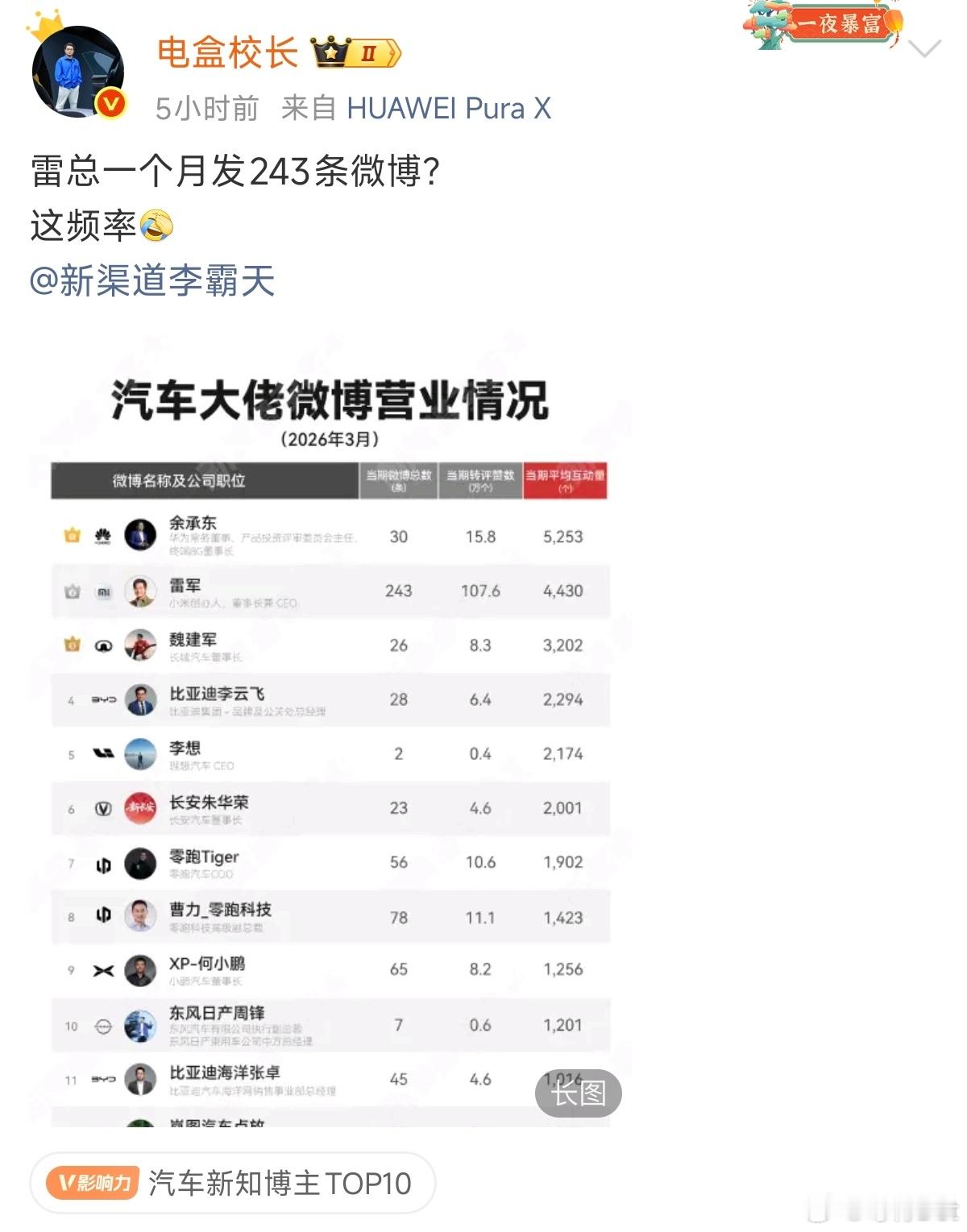 又要凸显雷军会营销,又要用榜单凸显另一位才是微博之王。这么带节奏引战,多拧巴啊新