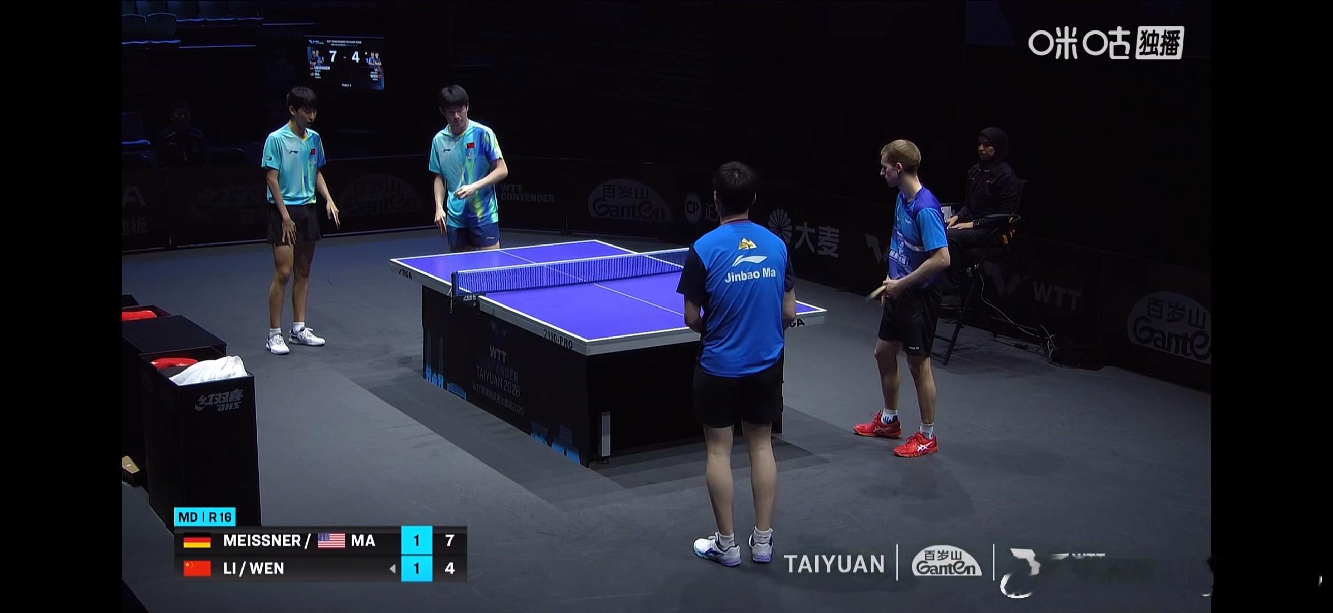 男双1/8决赛:🇨🇳李和宸/温瑞博3比2塞德里克🇩🇪/马金宝🇺🇸(11-9,10-12,8-11,11-4,11-9)