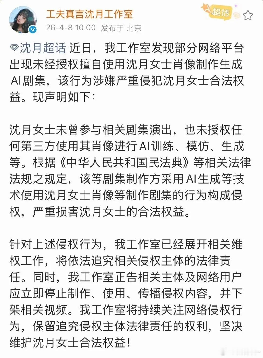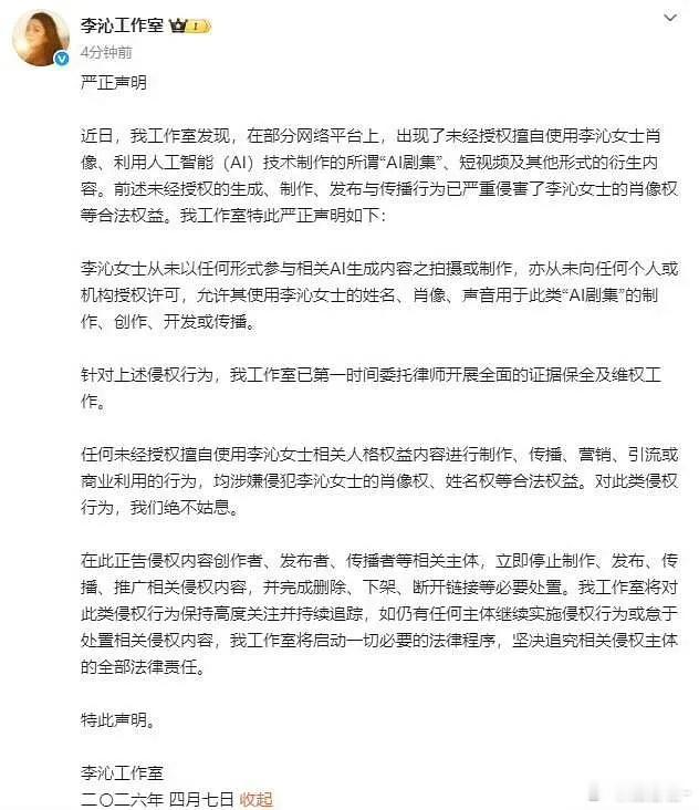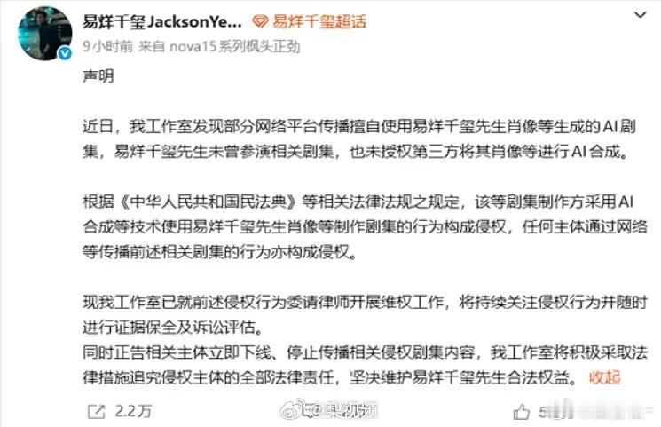 已经有8家明星发声抵制AI了杨紫,易烊千玺,邓为,龚俊,李沁,沈月,檀健次,王鹤