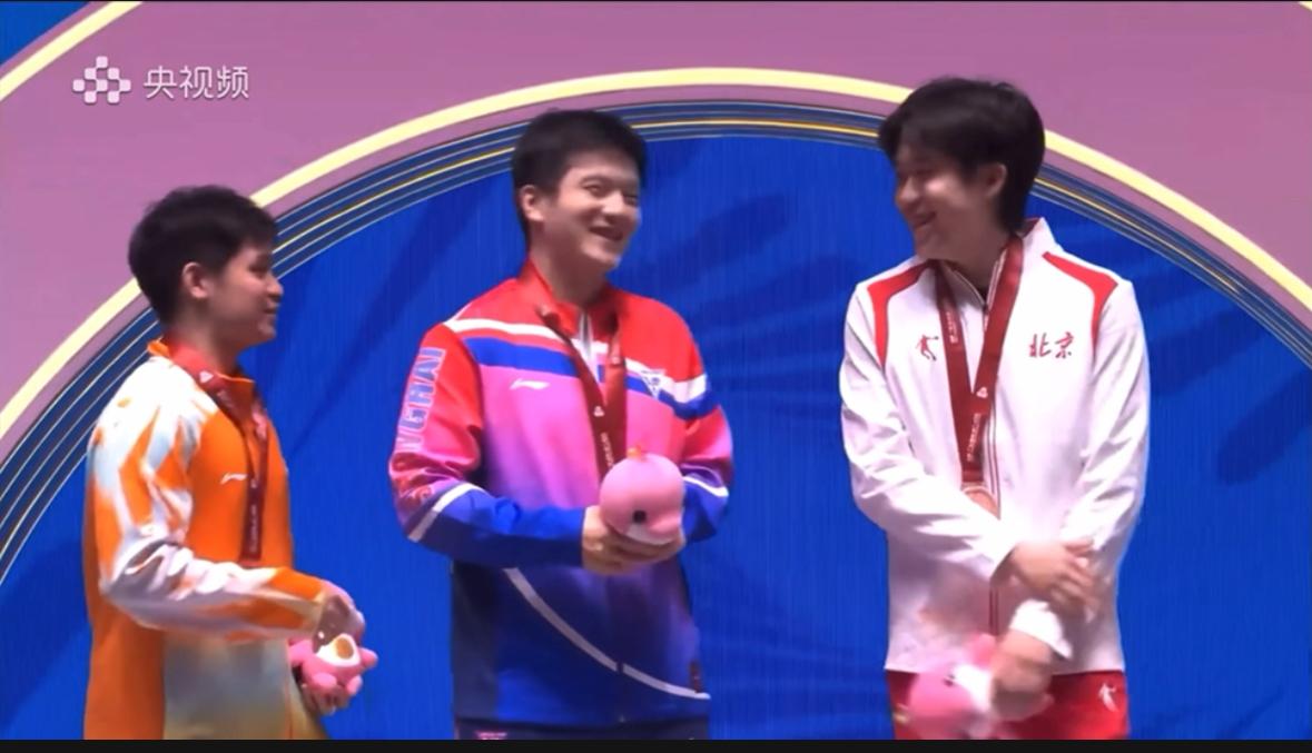 希望2028年的洛杉矶奥混会的赛场之上,可以再次看到他们三人共同站在领奖台上的一幕,就像全运颁奖礼上这样,一起在谈笑间,享受属于他们彼此的快乐...