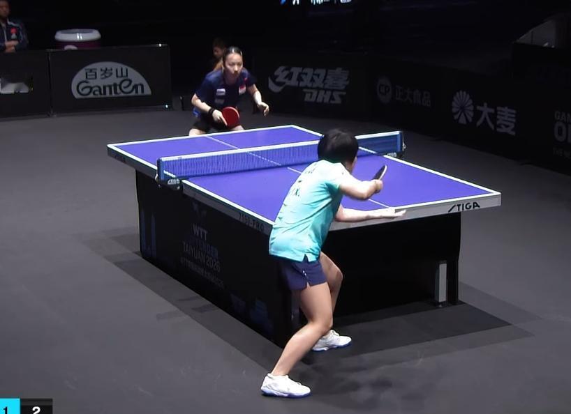 覃予萱3:1拿下舒麟茜,但关键球紧张的问题,又出现了! 第一局 两人打的胶着,