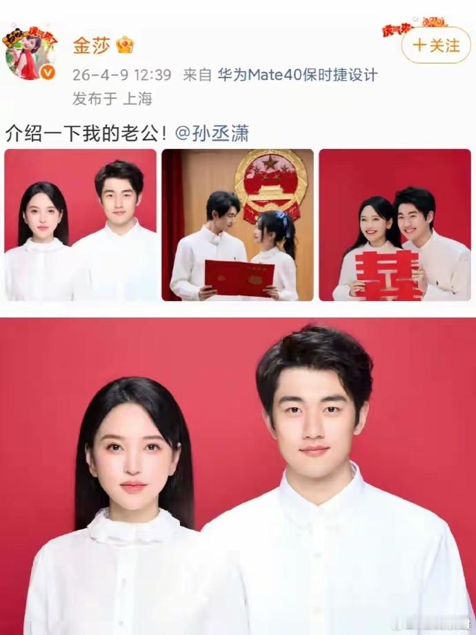 金莎和孙丞潇居然官宣结婚啦!2026年情人节前一天领证,4月9号公布消息,这