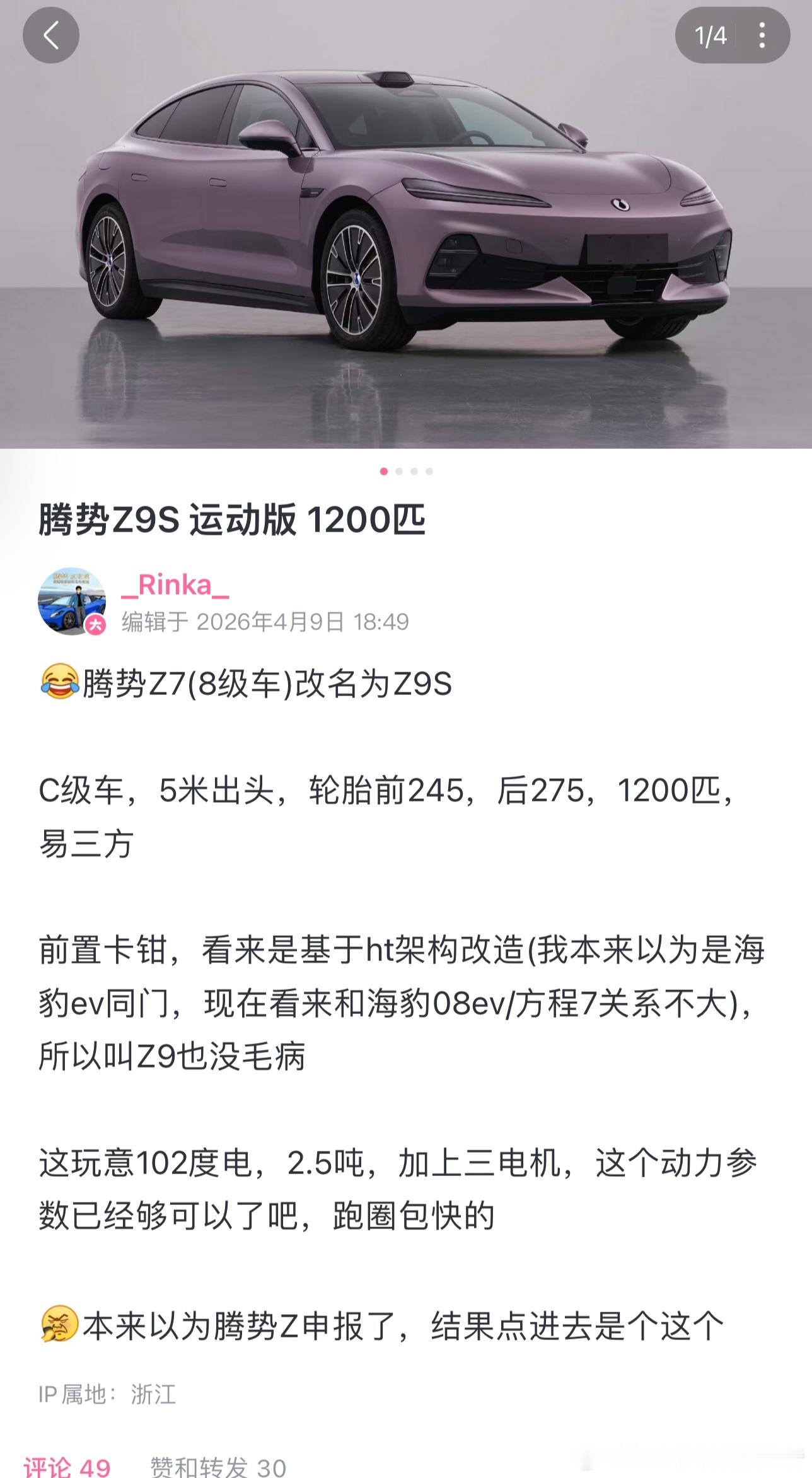 我看腾势Z9S争议蛮大的,主要是这个外观有些独特,和现款Z9系列不一样,但个人觉得还得看实车。而且,腾势Z9S不是走行政路线,走的是运动路线,估计会跑赛道刷圈的。这款车型用来拔高Z9系列的性能上限,其它的等上市后再看吧。