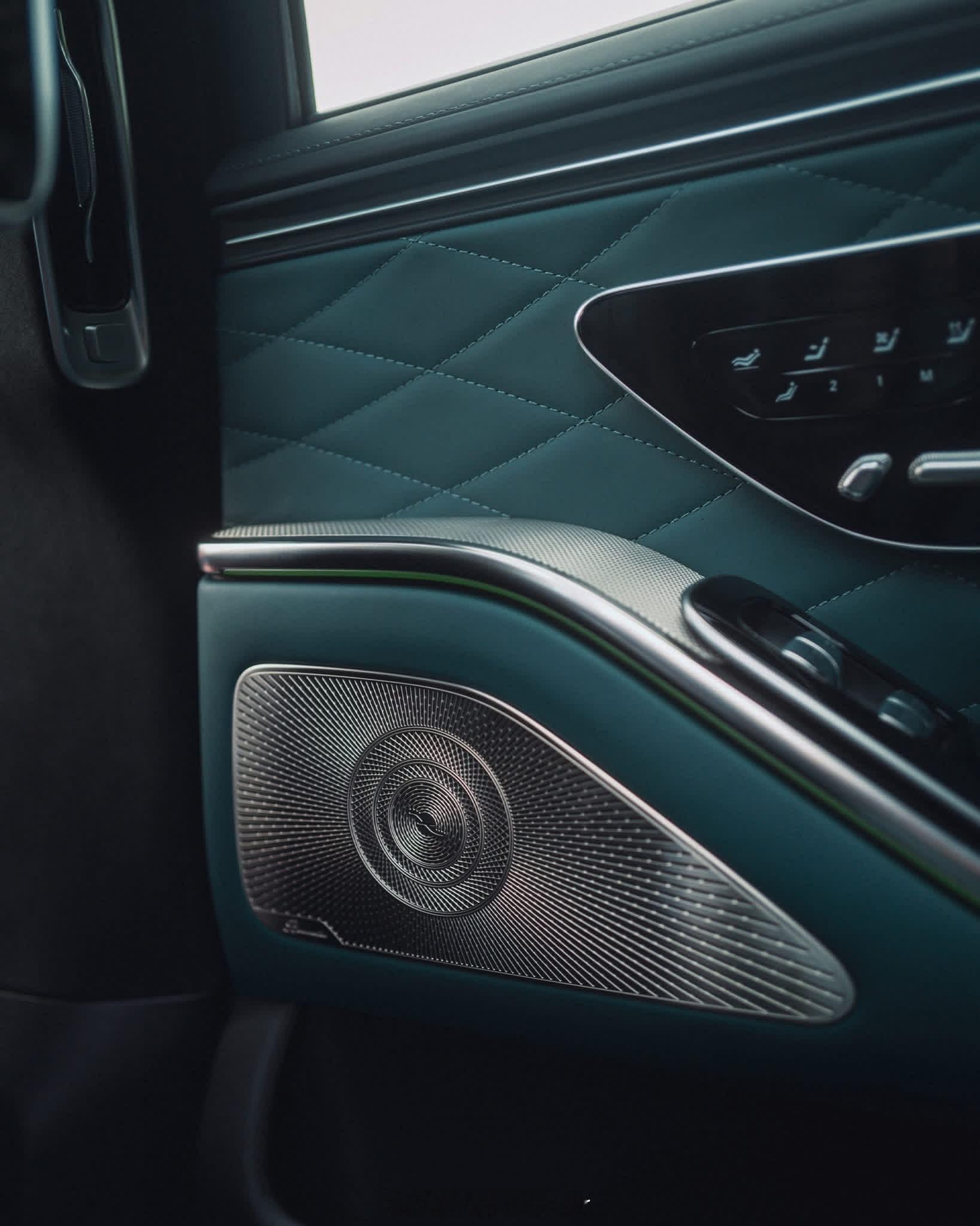 奔驰S也开始玩高奢定制了新款S级定制车湖绿色纳帕牛皮+杜鹃花刺绣MANUFAKT