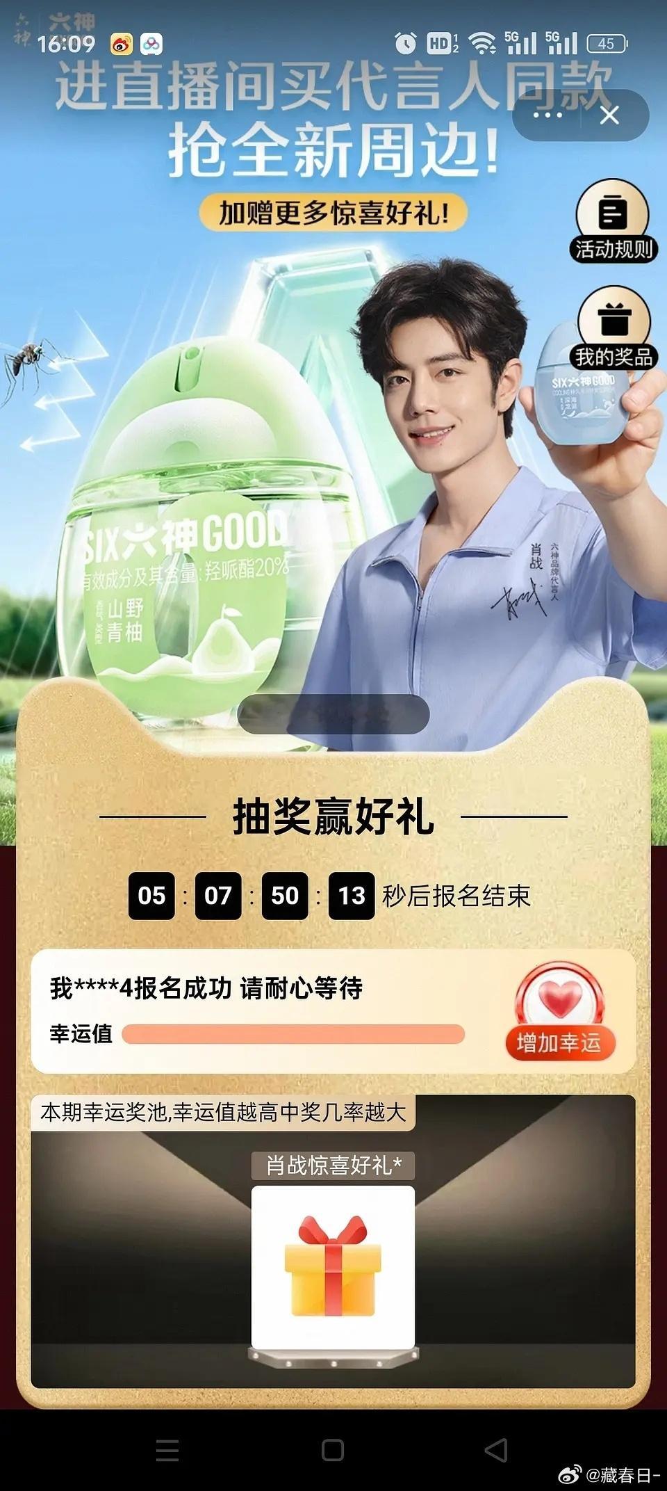 六神与肖战的第六年,他的代言好像都很长情,我知道的有开小灶,都是国民大品牌,六神消费抽亲签人数都破万了,牛牛牛