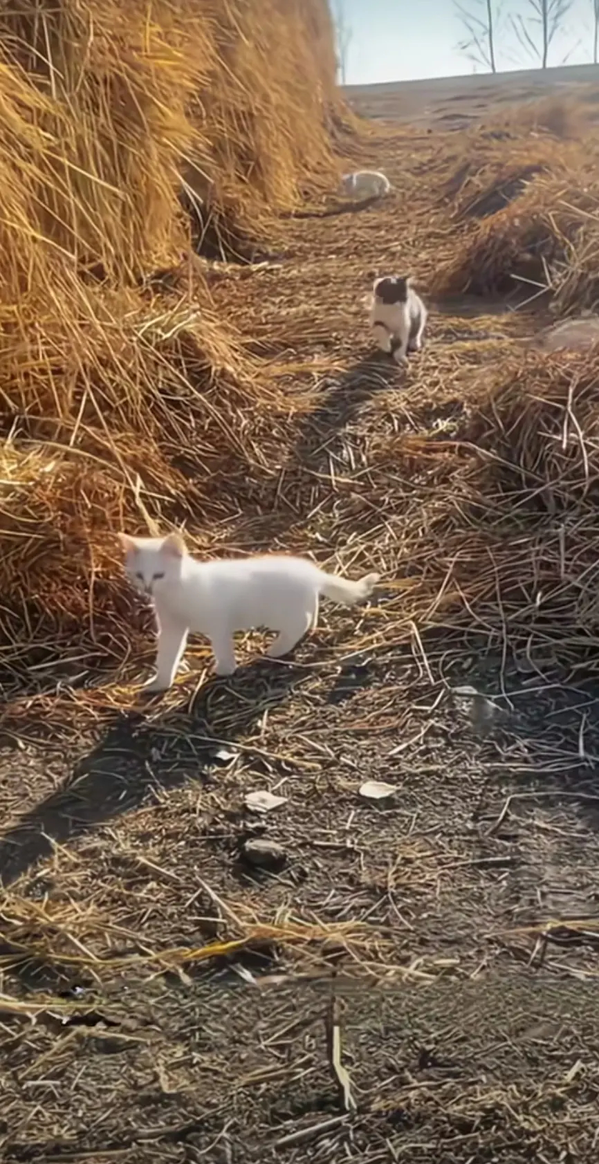 这四个小家伙不是流浪猫,它们是草场老板娘养的,让它们帮助捉老鼠。早上就放它们出来上班,晚上在抱回去下班,猫咪和主人真是双赢!
