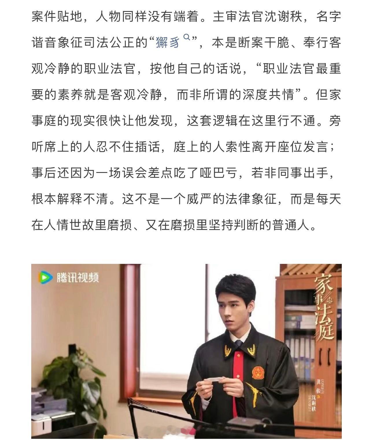腾讯视频评龚俊《家事法庭》:开启法治剧叙事新方式