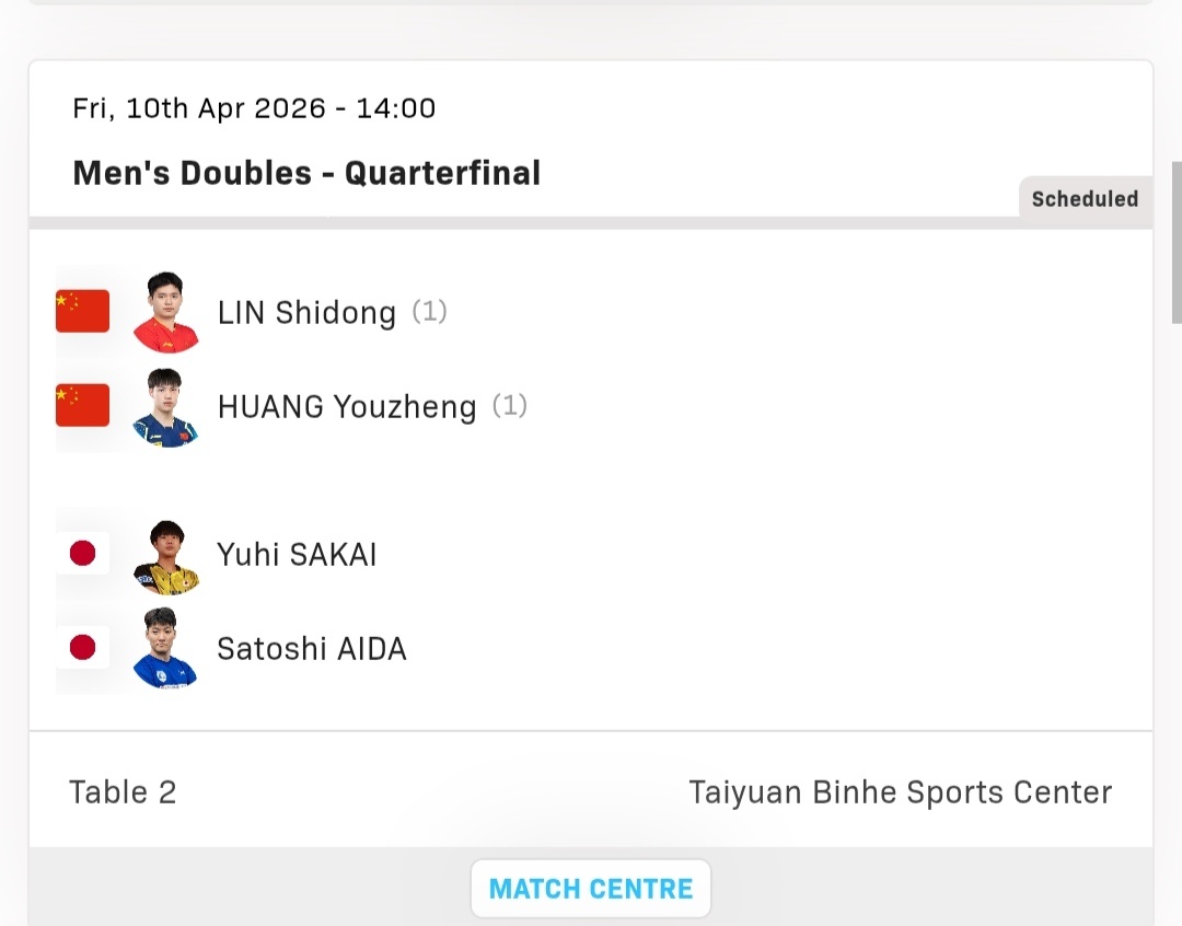 🏓赛程信息预告🏓『正赛第二比赛日』🏓04.10