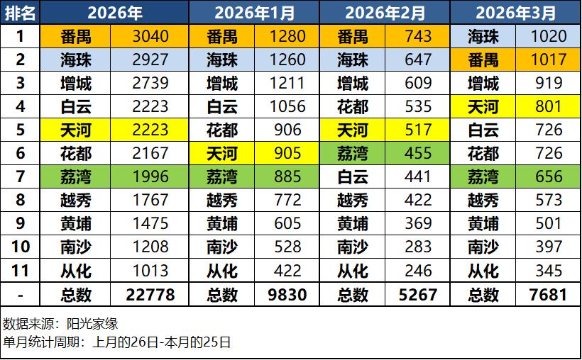 三、区域情况:2026年第一季度,天河反超荔湾