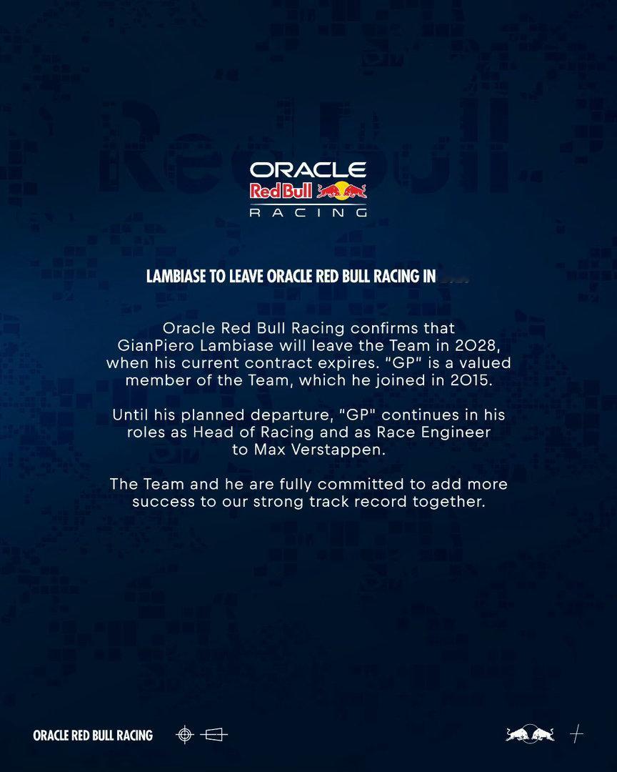 红牛官方宣布,GP将在2028年合同到期之后离开车队,结束13年红牛生涯。离队之前,他将继续担任如今的职位。