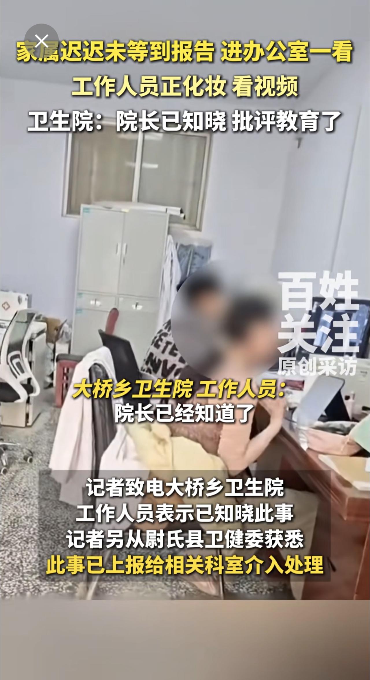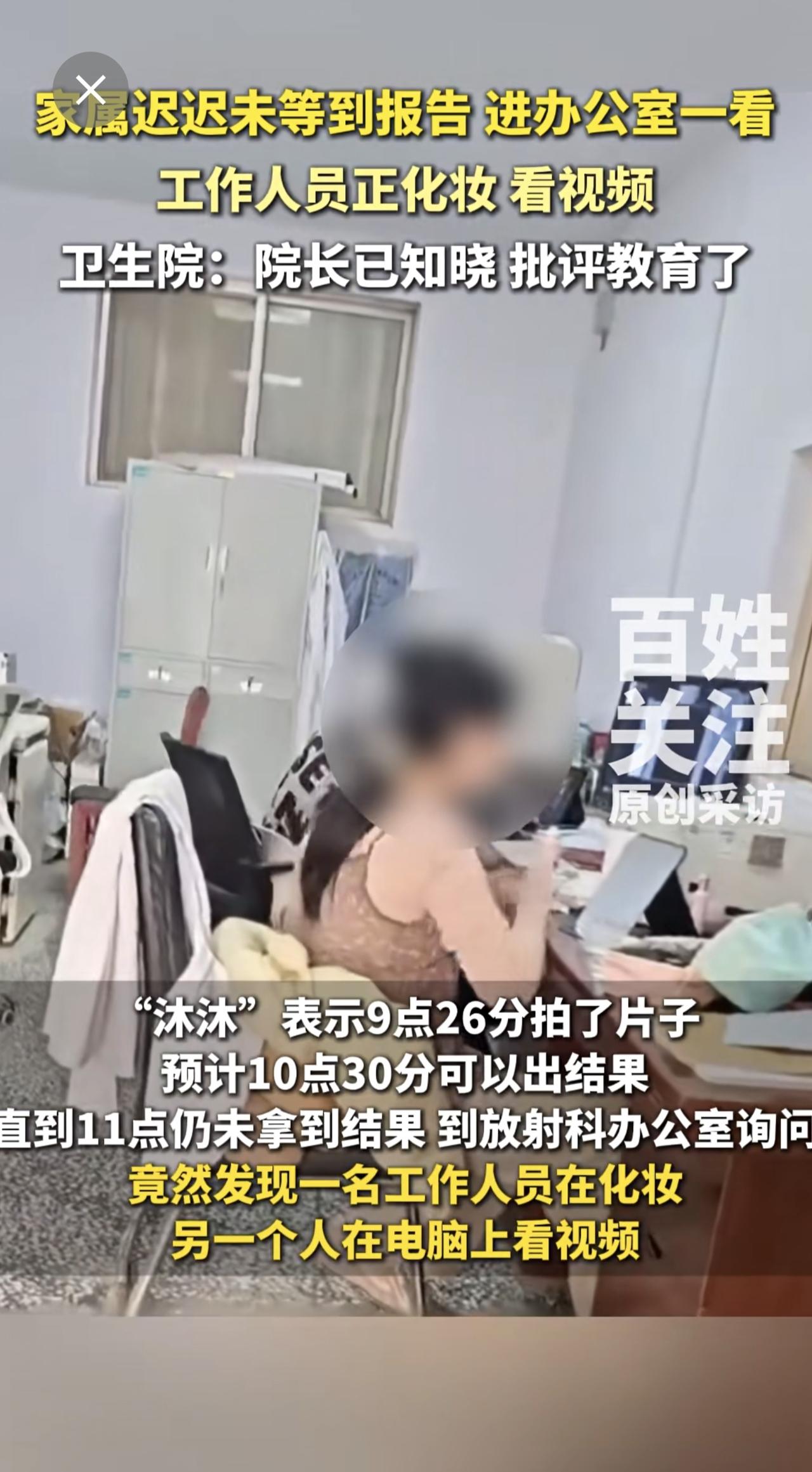 家属迟迟未等到报告,进办公室一看,工作人员正化妆、看视频。