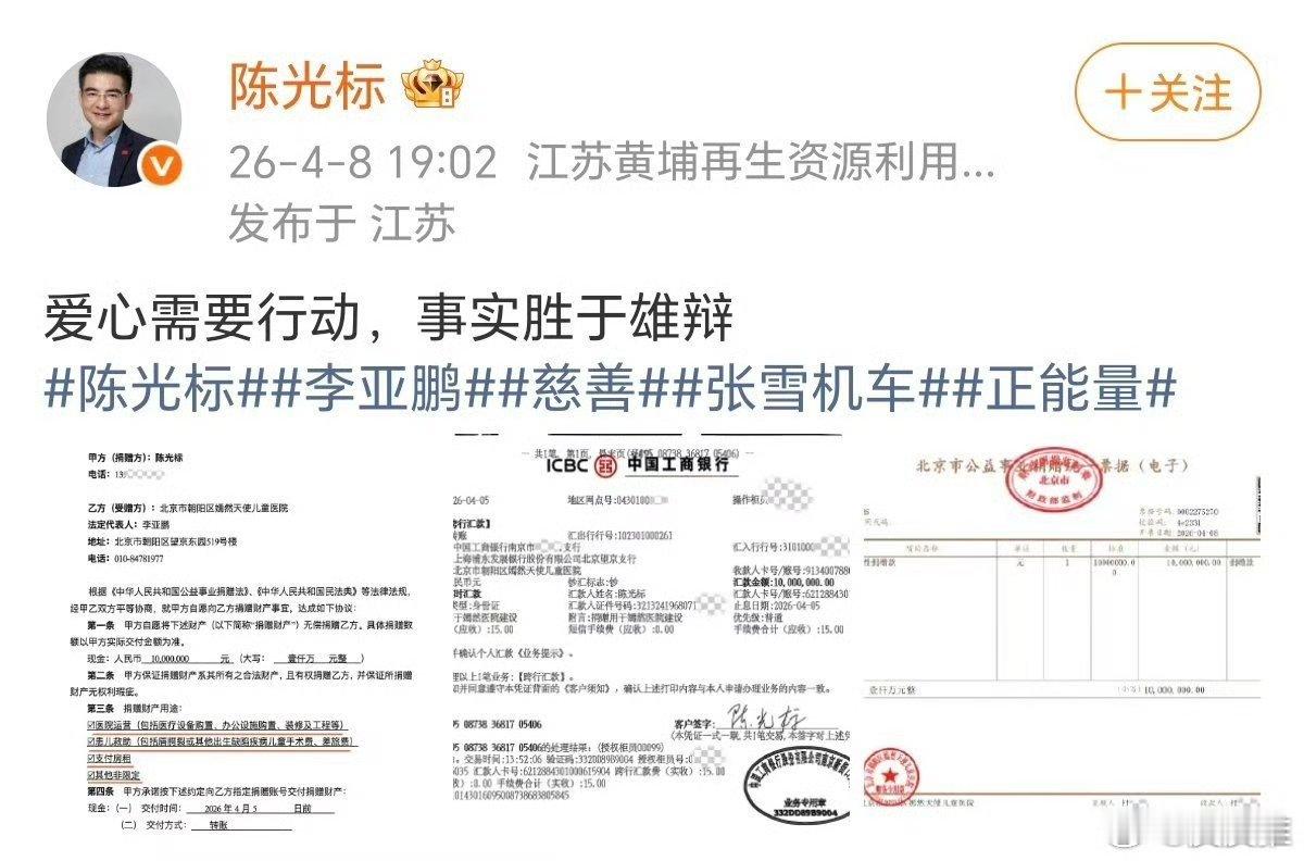李亚鹏心疼张雪加码捐赠嫣然陈光标是善人,李亚鹏有担当,张雪很励志,这三个人都值得