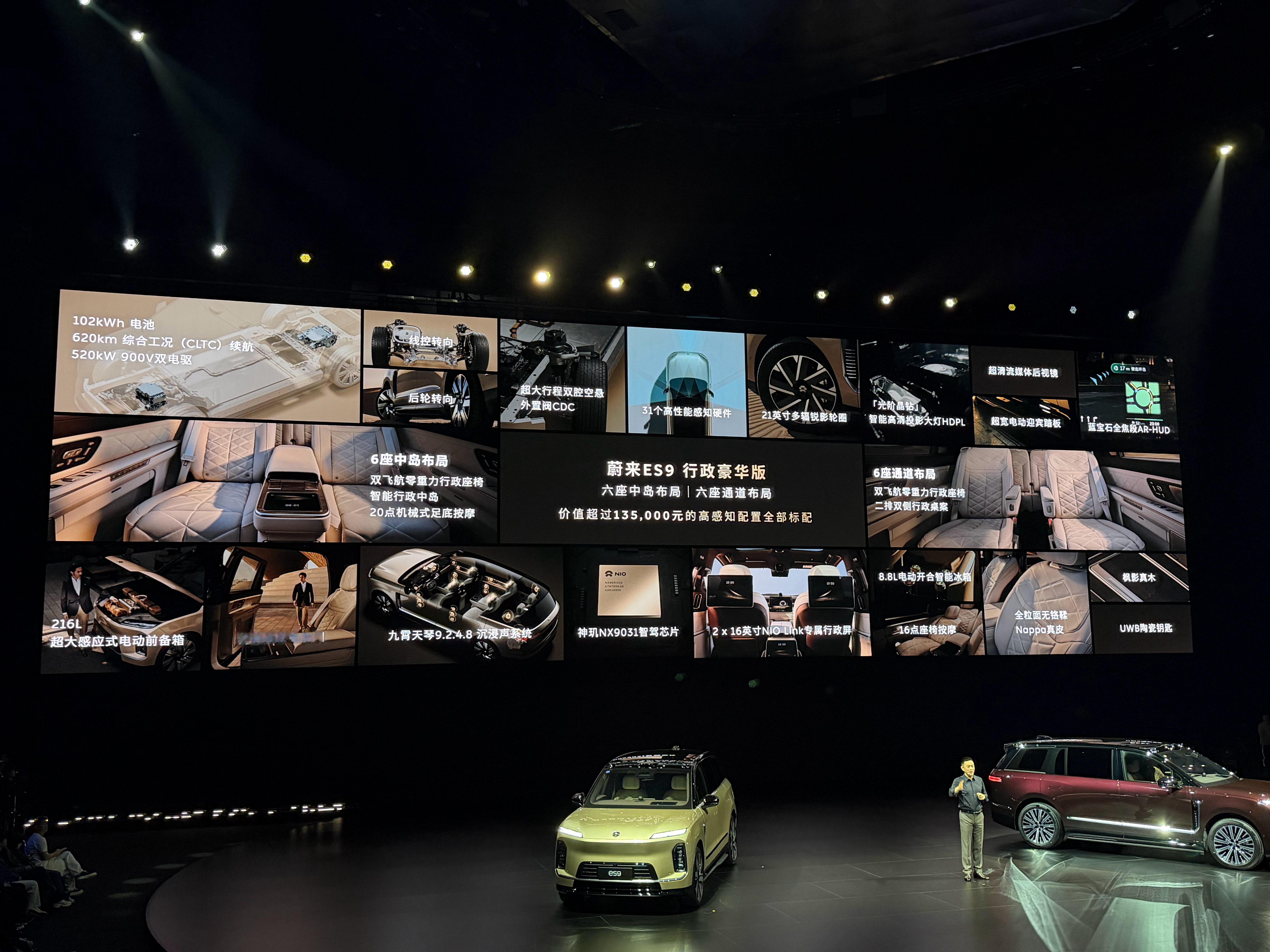 拆分天行底盘,蔚来ES9豪华版起预售价 52.8 万起,电池租赁 42 万起。蔚