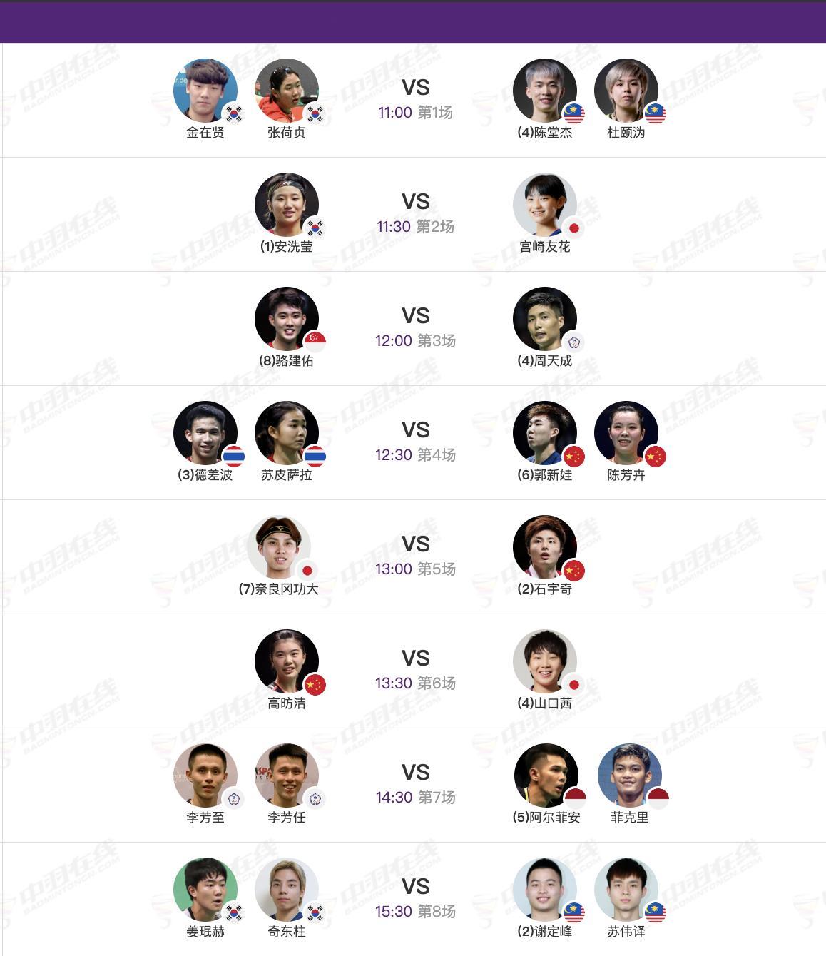 2026年羽毛球亚锦赛 4月10日各单项8进4赛程,早上11点开赛: