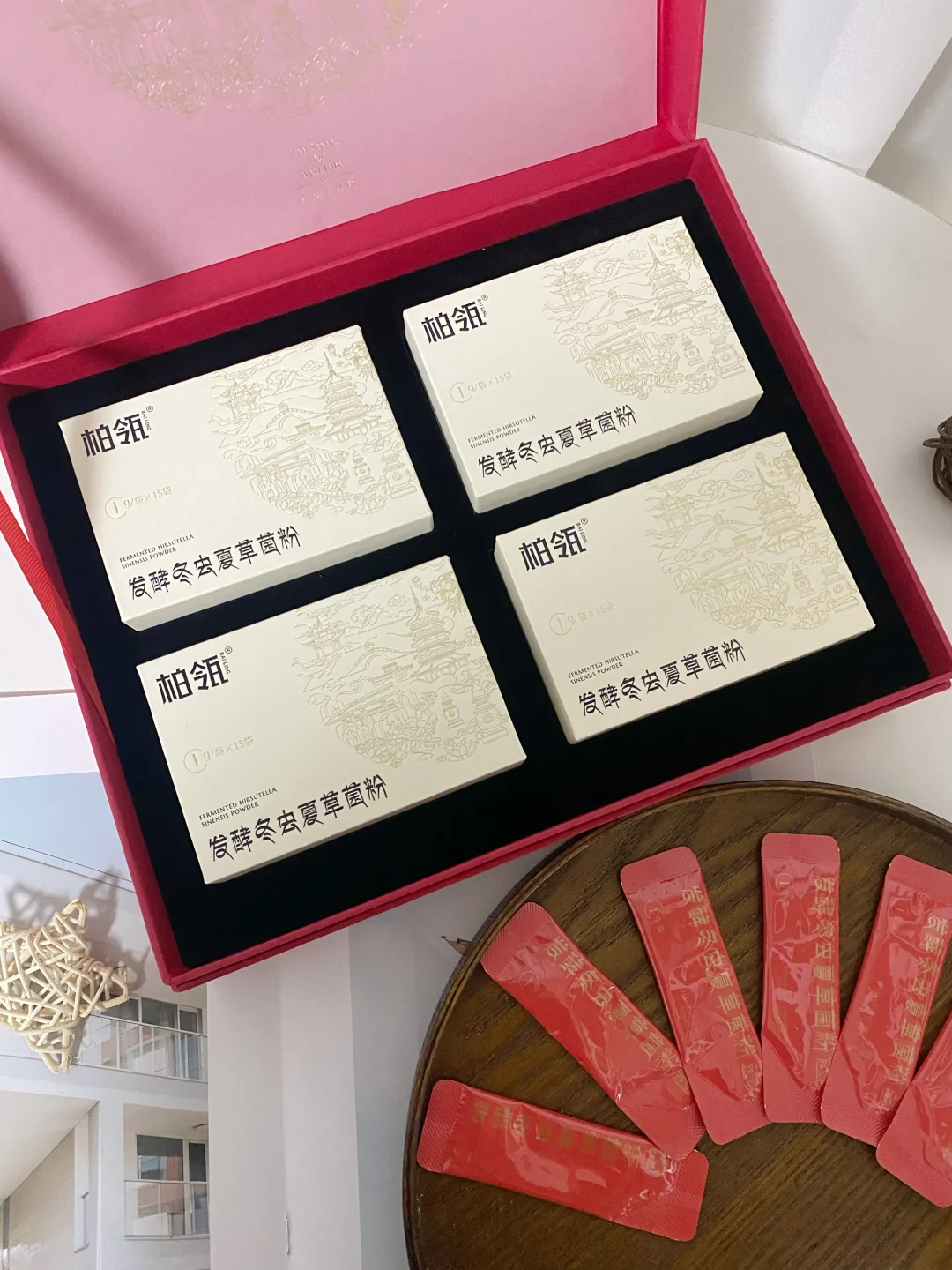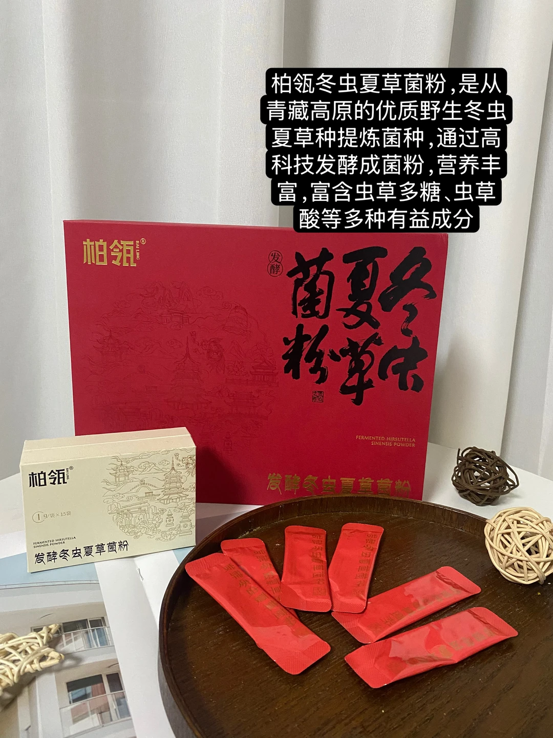 从青藏高原的优质野生冬虫夏草种提炼菌种,通过高科技发酵成菌粉,营养丰富,富含虫草多糖、虫草酸等多种有益成分,吃1g 菌粉约相当于吃了 32 根冬虫夏草精华,比直接买虫草性价比更高,不用担心买到假的,也不含杂质。包装也是很喜庆的大红色,外面还有一个精美的礼袋,过年走亲访友送礼,很有面子。