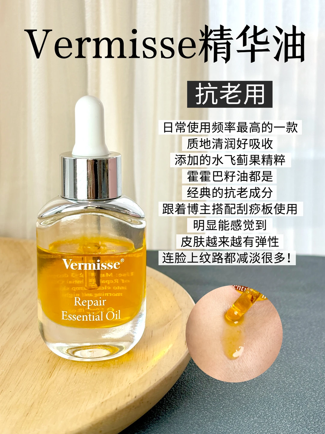 日常使用频率最高的一款,质地清润好吸收,添加的水飞蓟果精粹、霍霍巴籽油都是经典的抗老成分,跟着博主搭配刮痧板使用,明显能感觉到皮肤越来越有弹性,连脸上纹路都减淡很多!