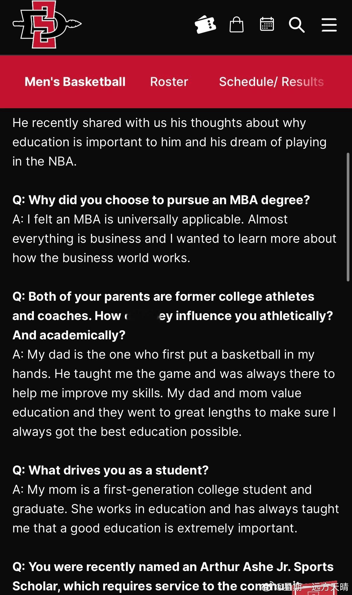 辽宁男篮莱迪 我们拥有MBA学位的高材生莱迪在入学前接受采访。莱迪之前是圣地亚哥大学的学生,在本校NCAA球队打球,进入MBA后继续同时在NCAA打球。文章发布日期是2024年4月9日。