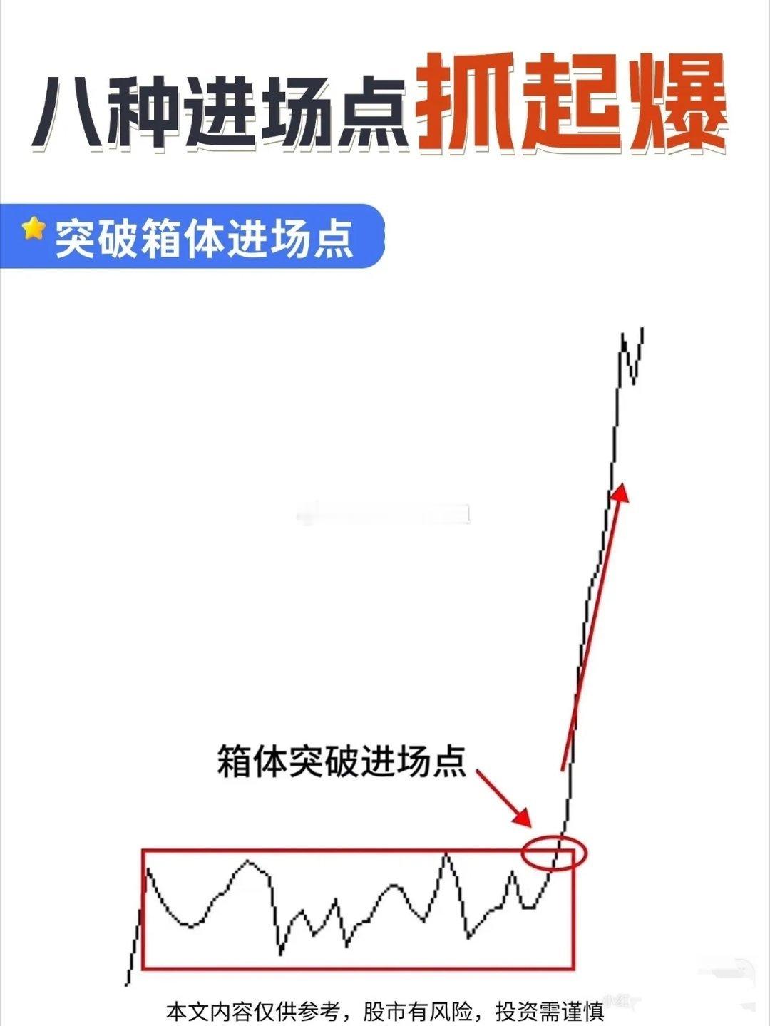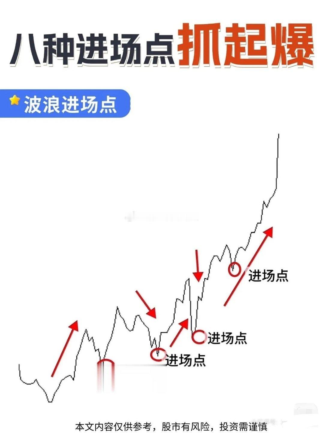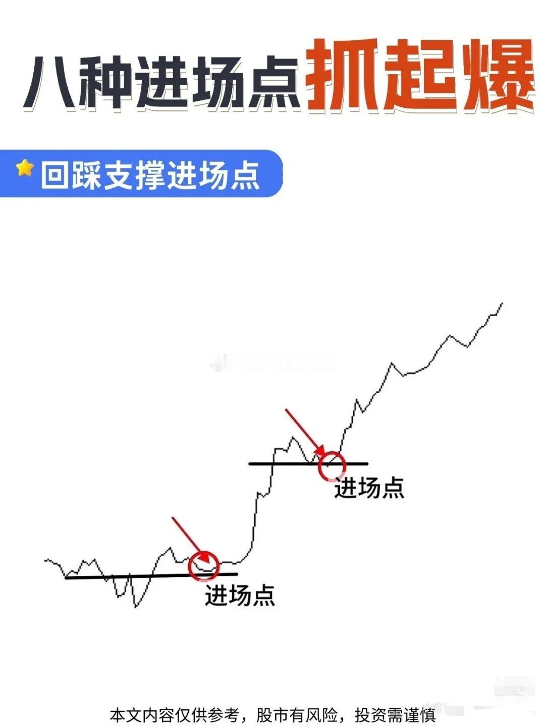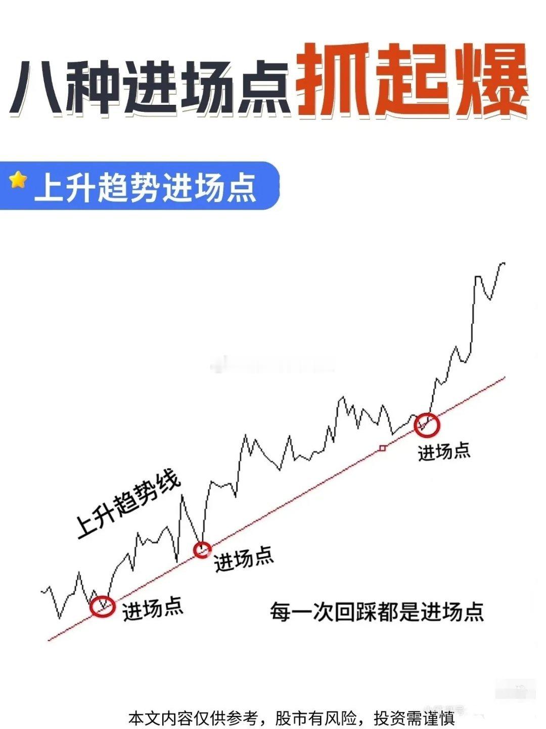 股市里如何找到入场点把握主力资金入场起爆时机!在股票投资里,找准进场点太重要了,不然不是买早被套,就是买晚踏空。下面说说几种经典进场点。均线进场点,20日均线是短期趋势“生命线”。股价上升后回踩它获支撑,就是低吸时机。像股价震荡上行,回落到20日均线附近就反弹。突破箱体进场点,股价在箱体波动,向上突破上沿,多头打破平衡,可顺势进场。比如股价在箱体内震荡后,放量突破上沿,随后加速上涨。还有上升趋势进场点,上升趋势线是多头“支撑防线”,股价回踩趋势线时,就是依托趋势进场的好时机。另外,K线信号也很有用。像低位锤子线,连续下跌后出现,是止跌反转信号;阳包阴吞没形态,多头碾压空头,是主力拉升信号;早晨之星是经典底部反转形态。掌握这些,入场准确率能大大提升,值得收藏!