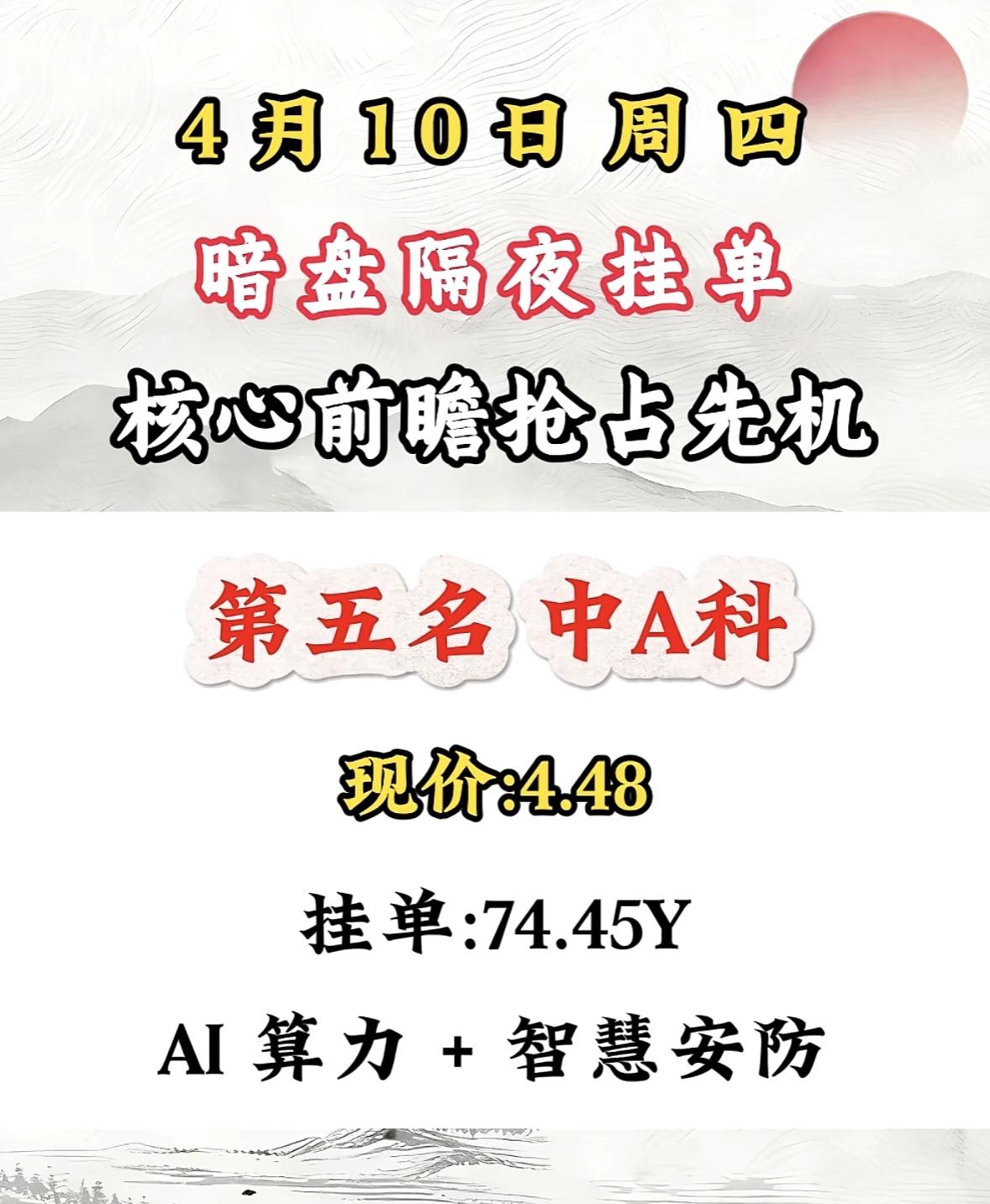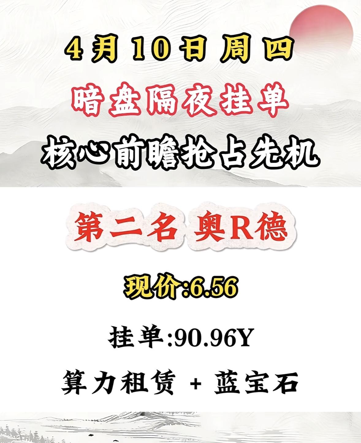4月10日周五暗盘隔夜挂单排行榜揭晓