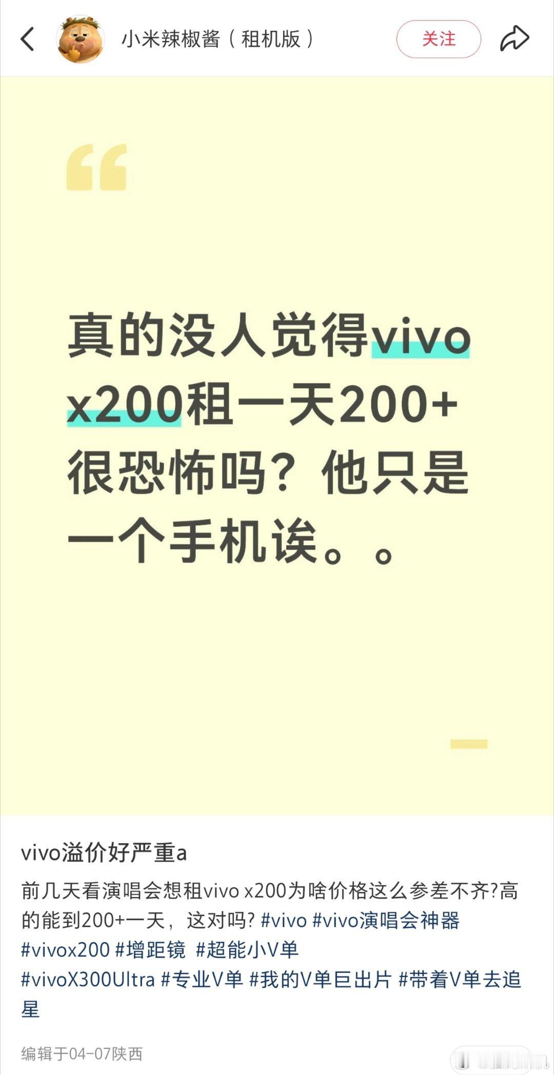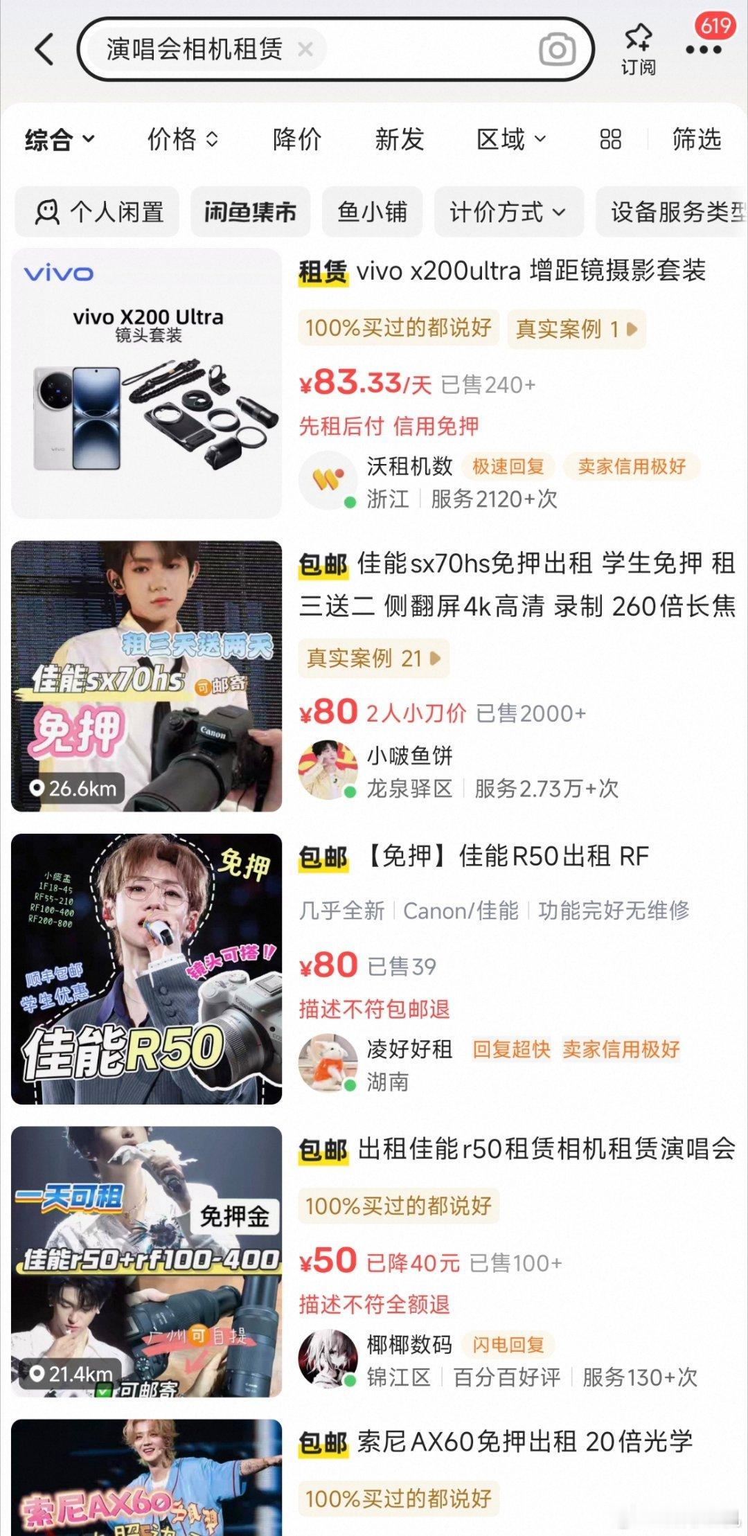 小红书上刷到有人说vivox200 300ultra+增距镜的租赁价格贵的离谱。于是我上闲鱼看了下,原装配件的话需要80左右每天。