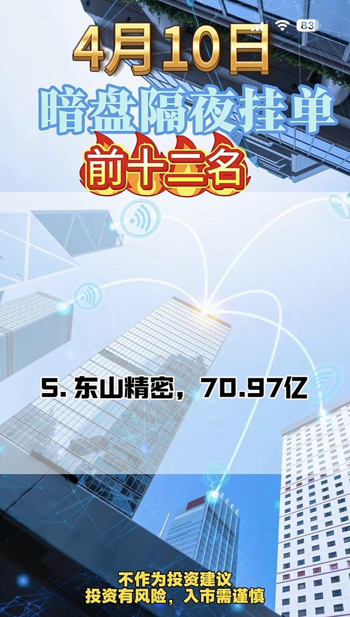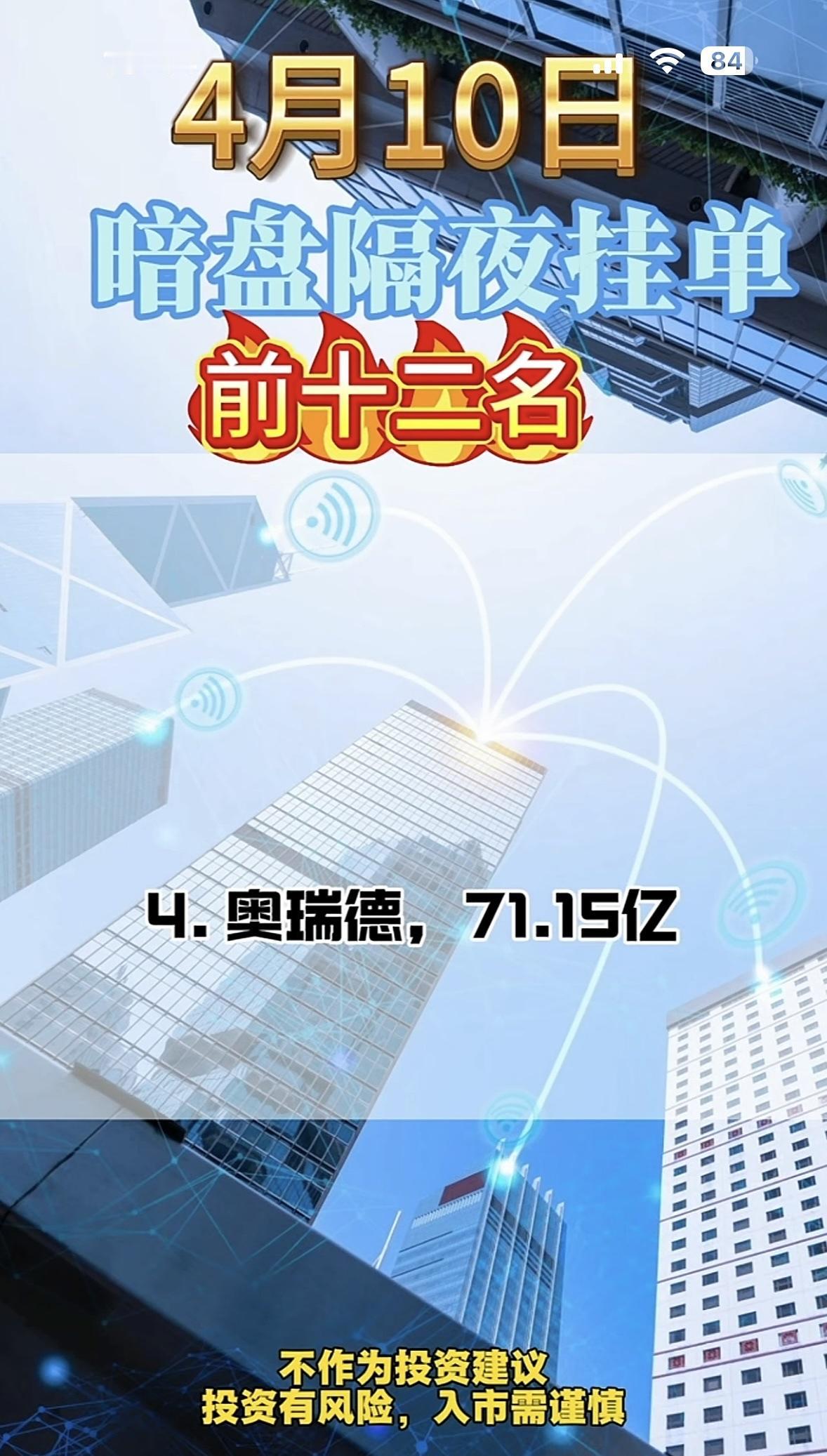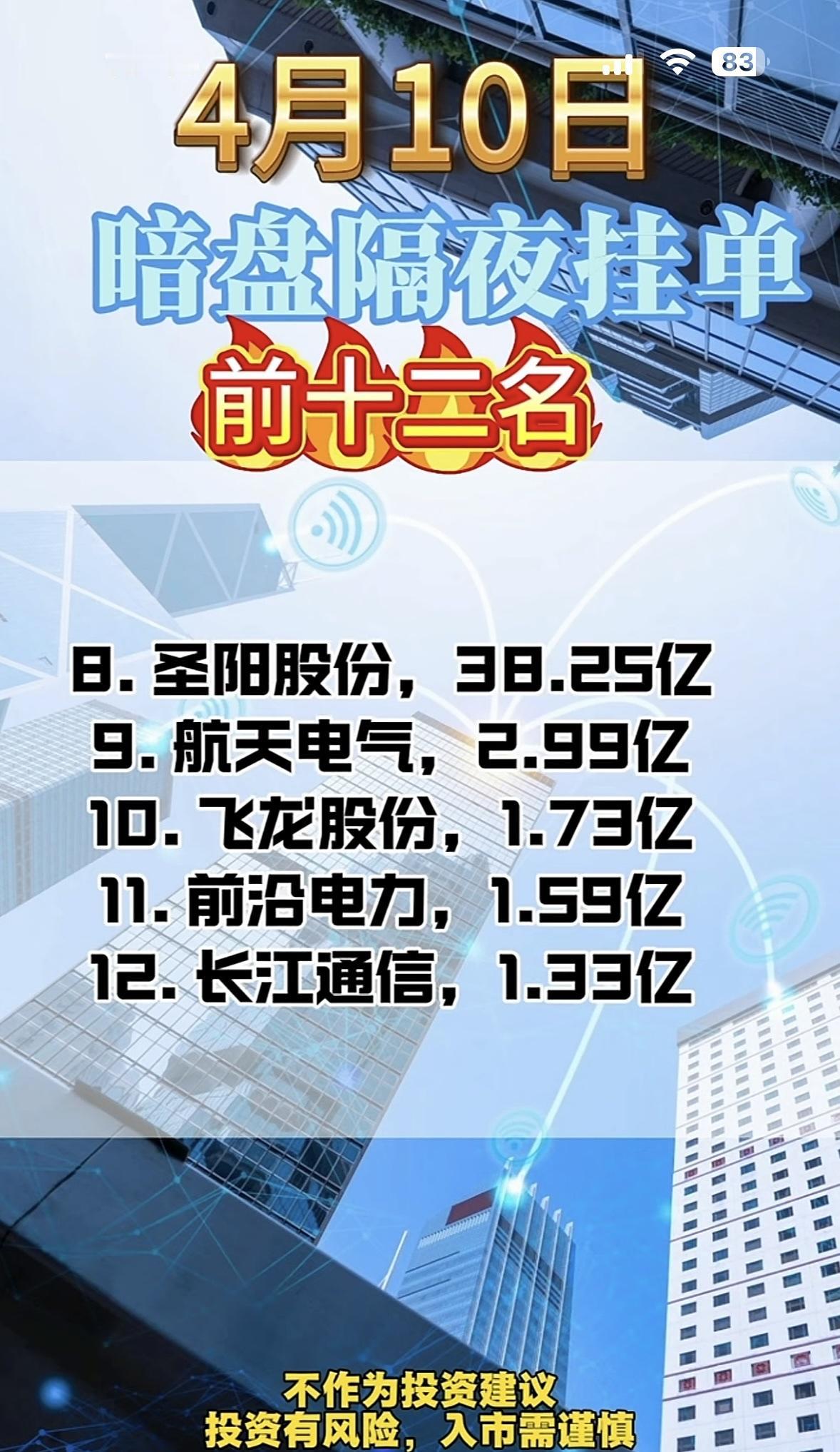4月10日周五暗盘隔夜挂单前十二名值得关注。