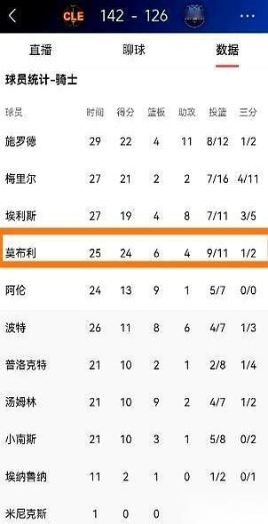 骑士赢了,还是142比126这种大胜,可莫布里看着数据表,手里的球衣不自觉地捏紧了。